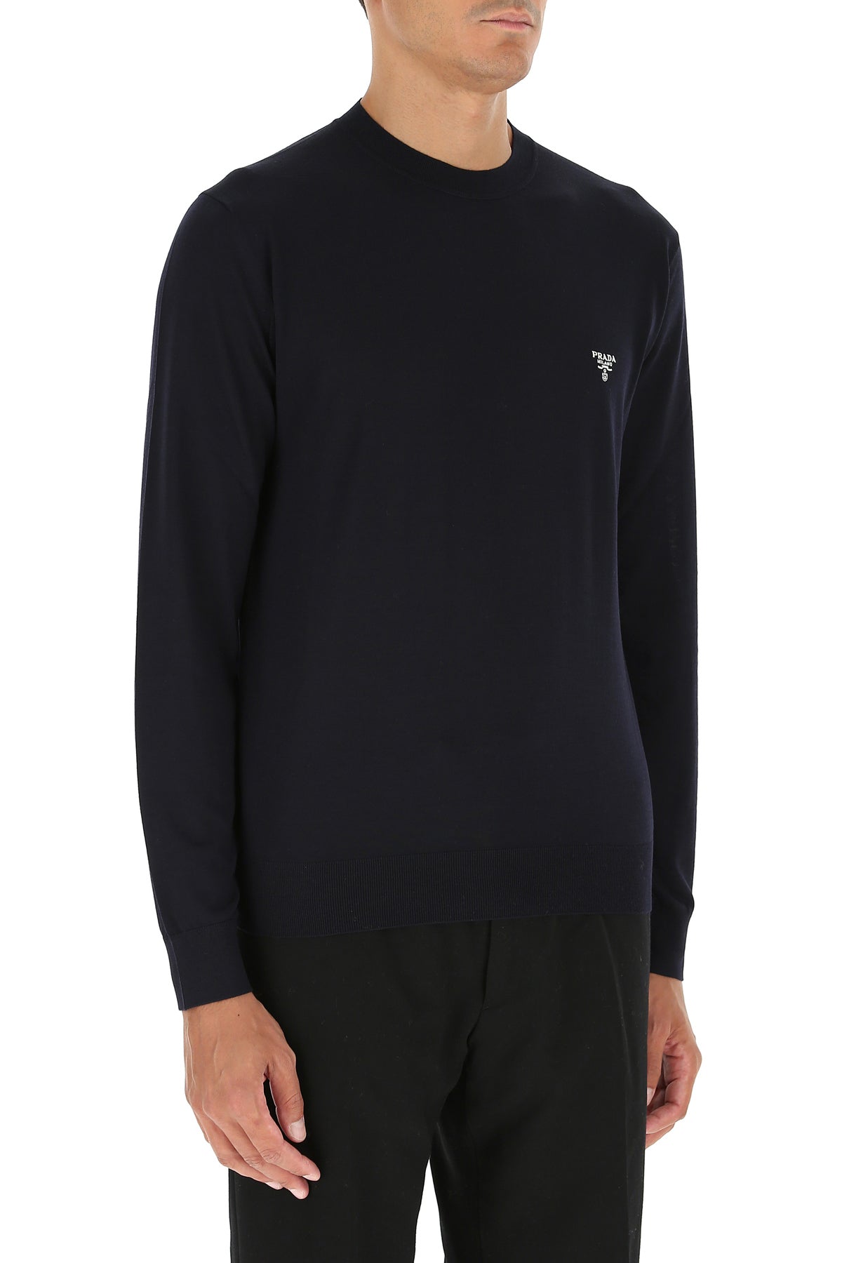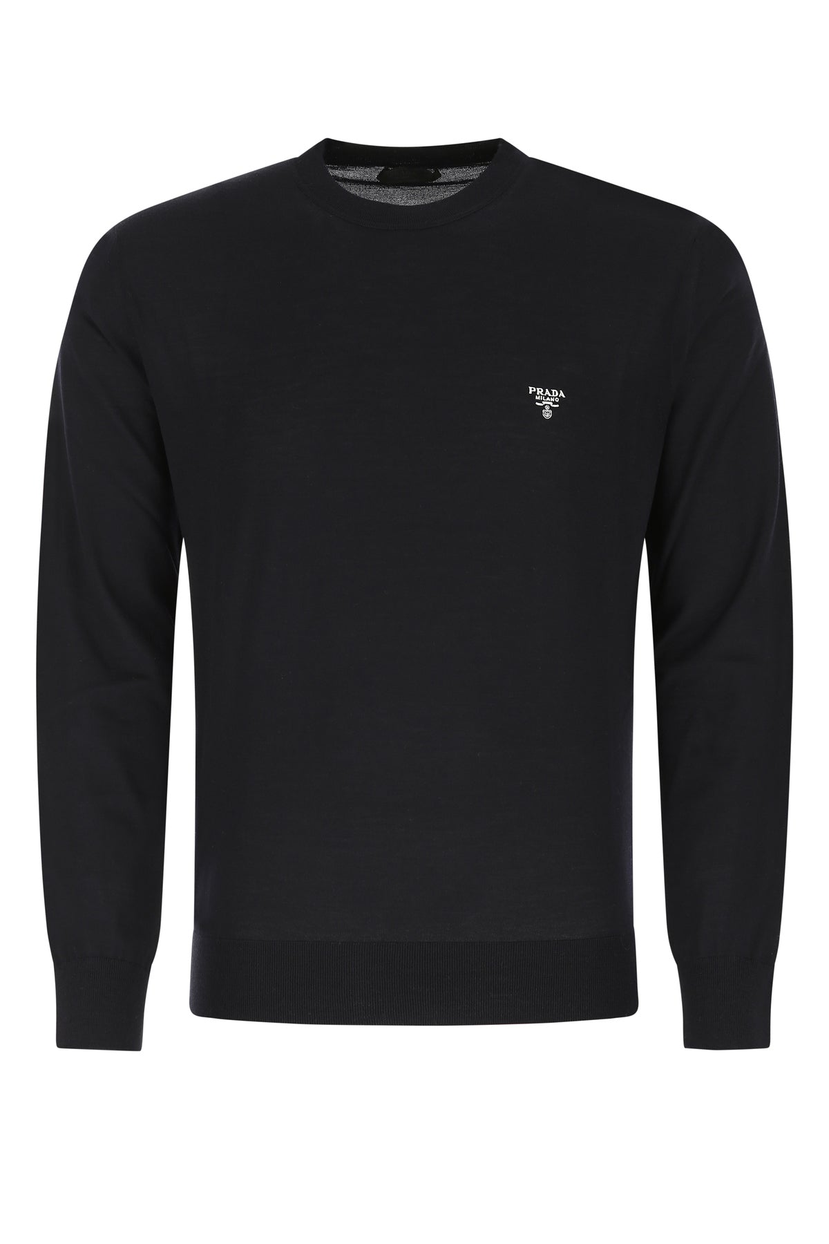 Light weight sweater realized in pure virgin wool characterized by contrasting embroidered logo on the chest.