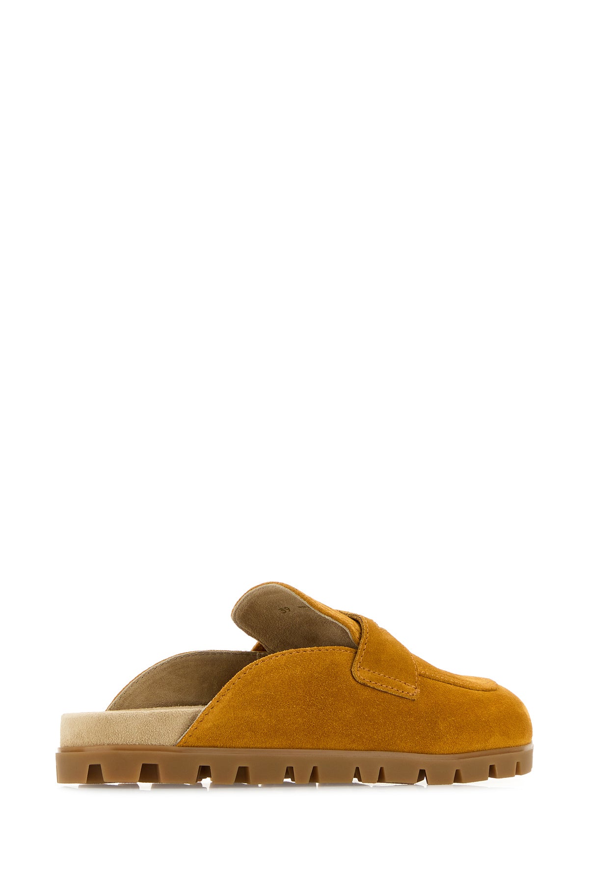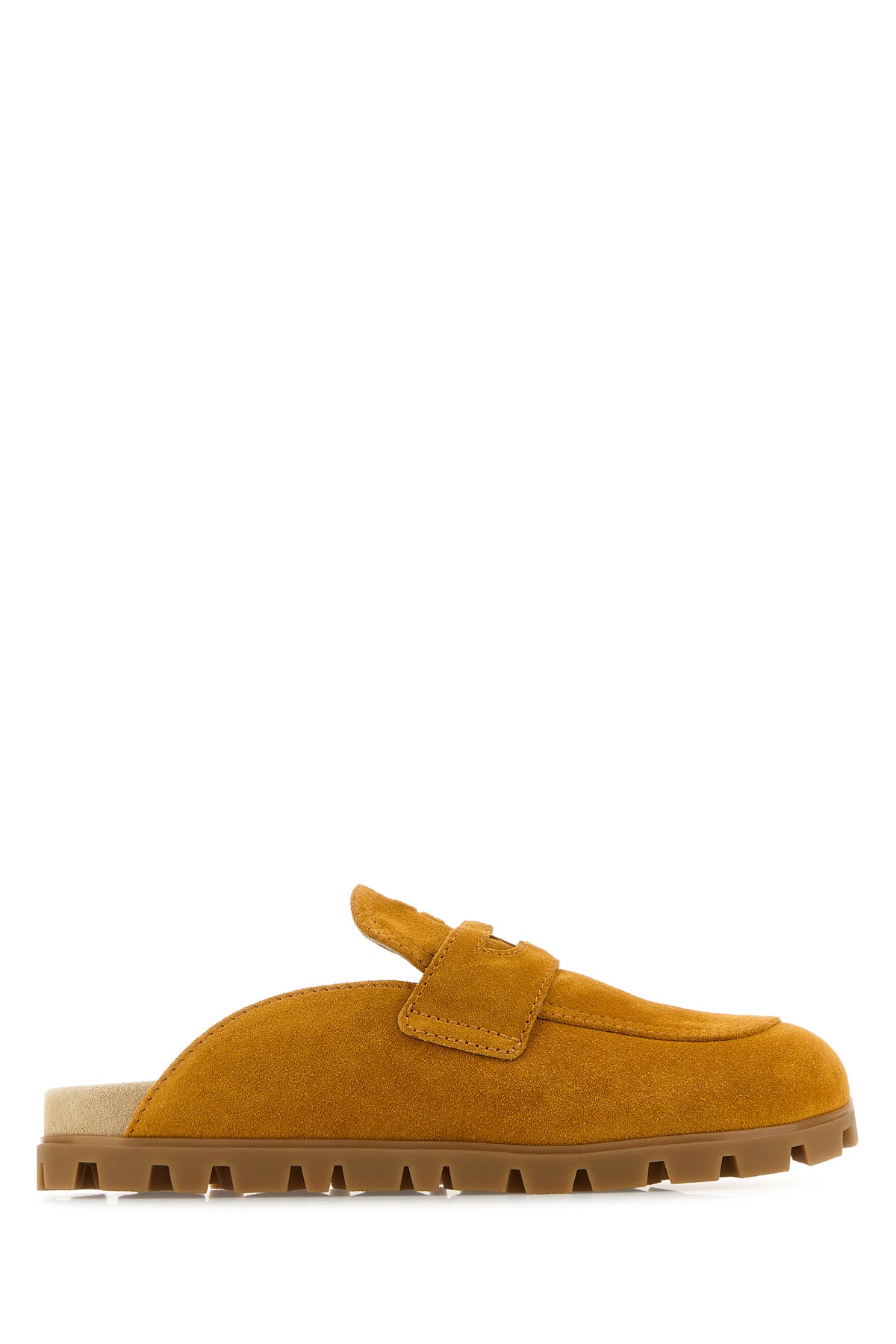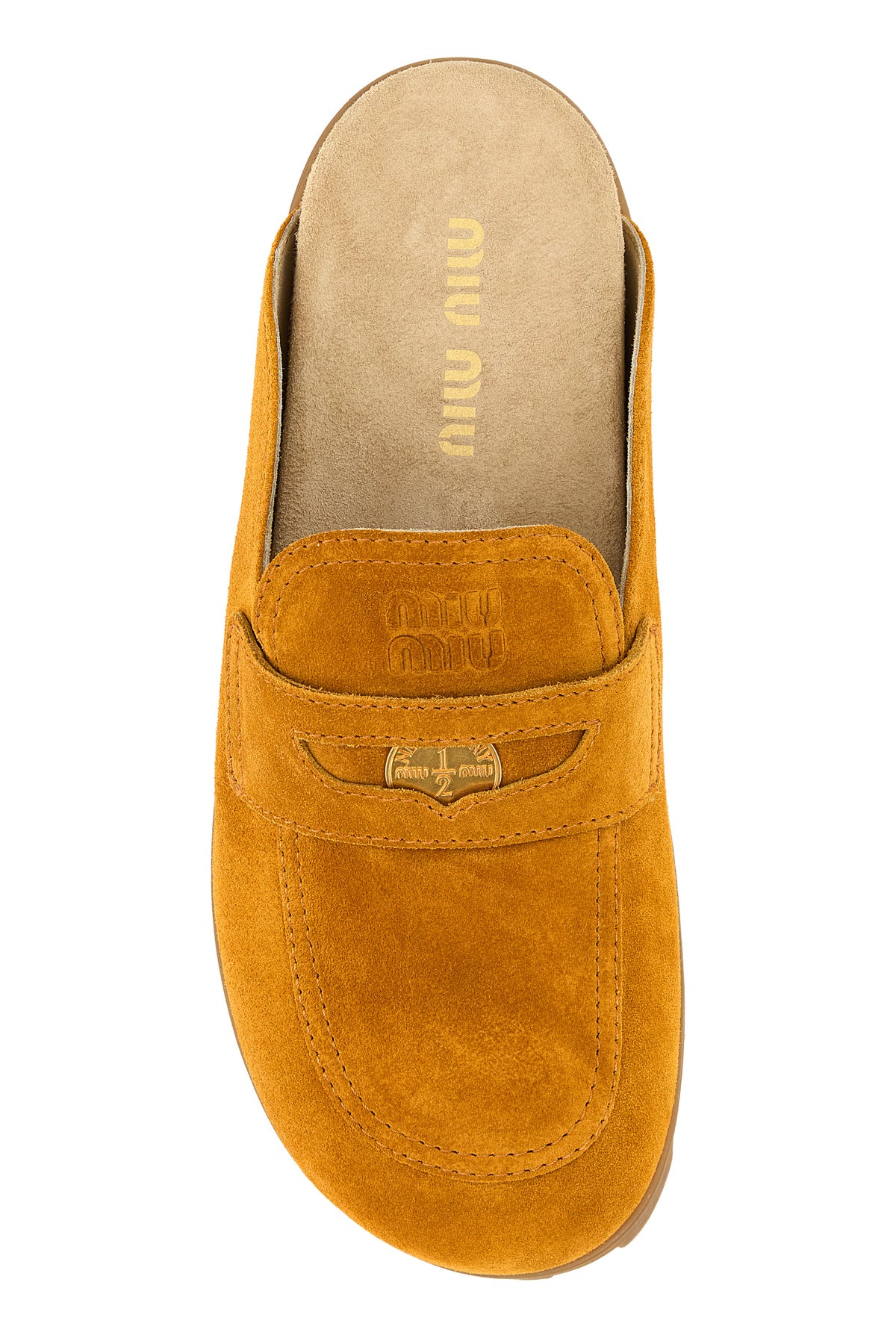 Slippers realized in calf suede characterized by logo in relief at the front enriched by metal logoed detail on the vamp.
