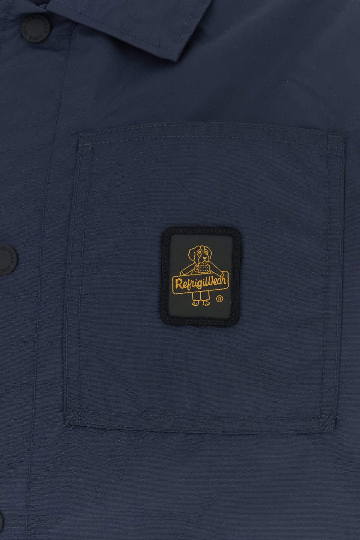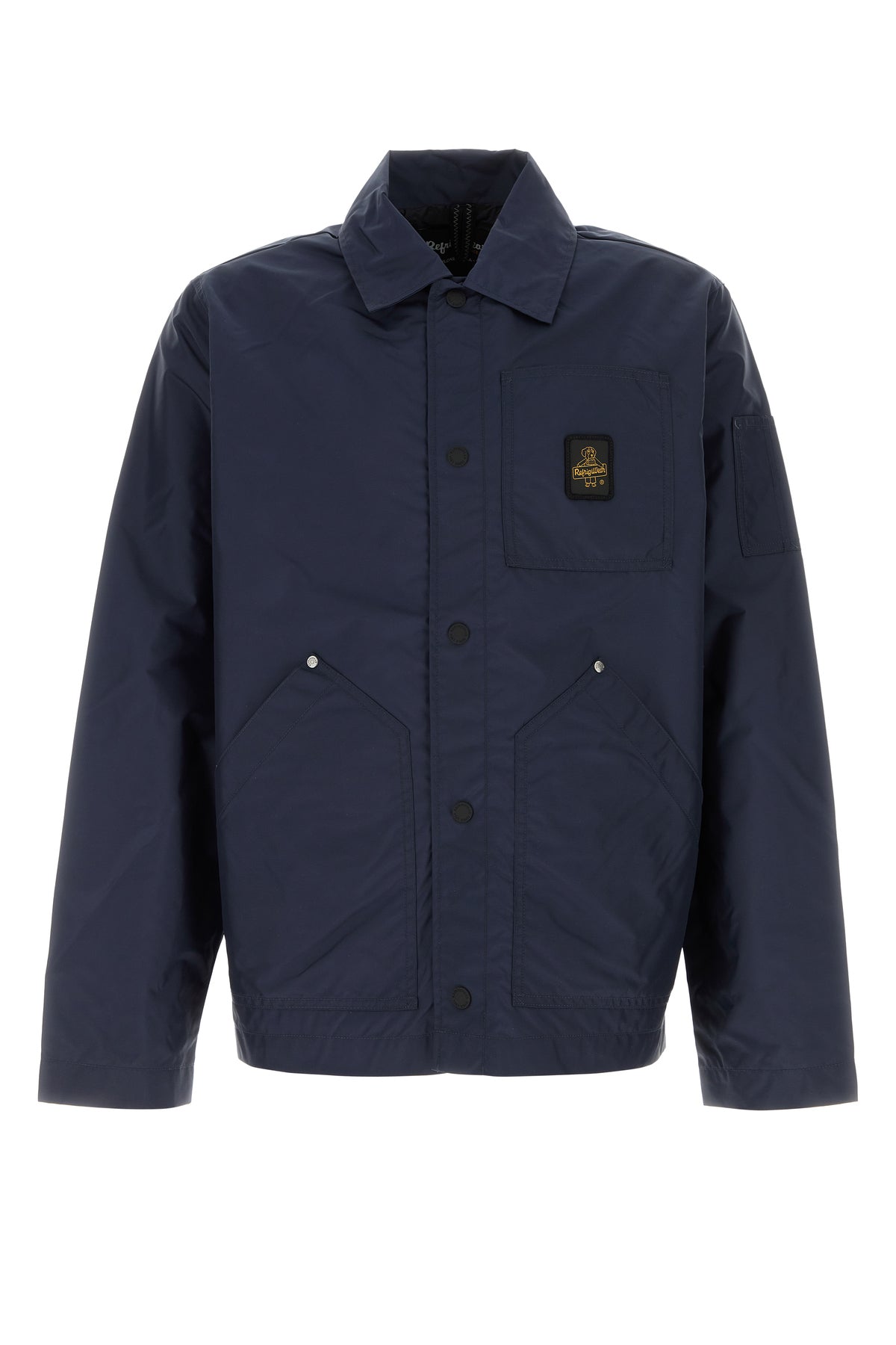Jacket realized in nylon enriched by contrasting logoed label on the chest.