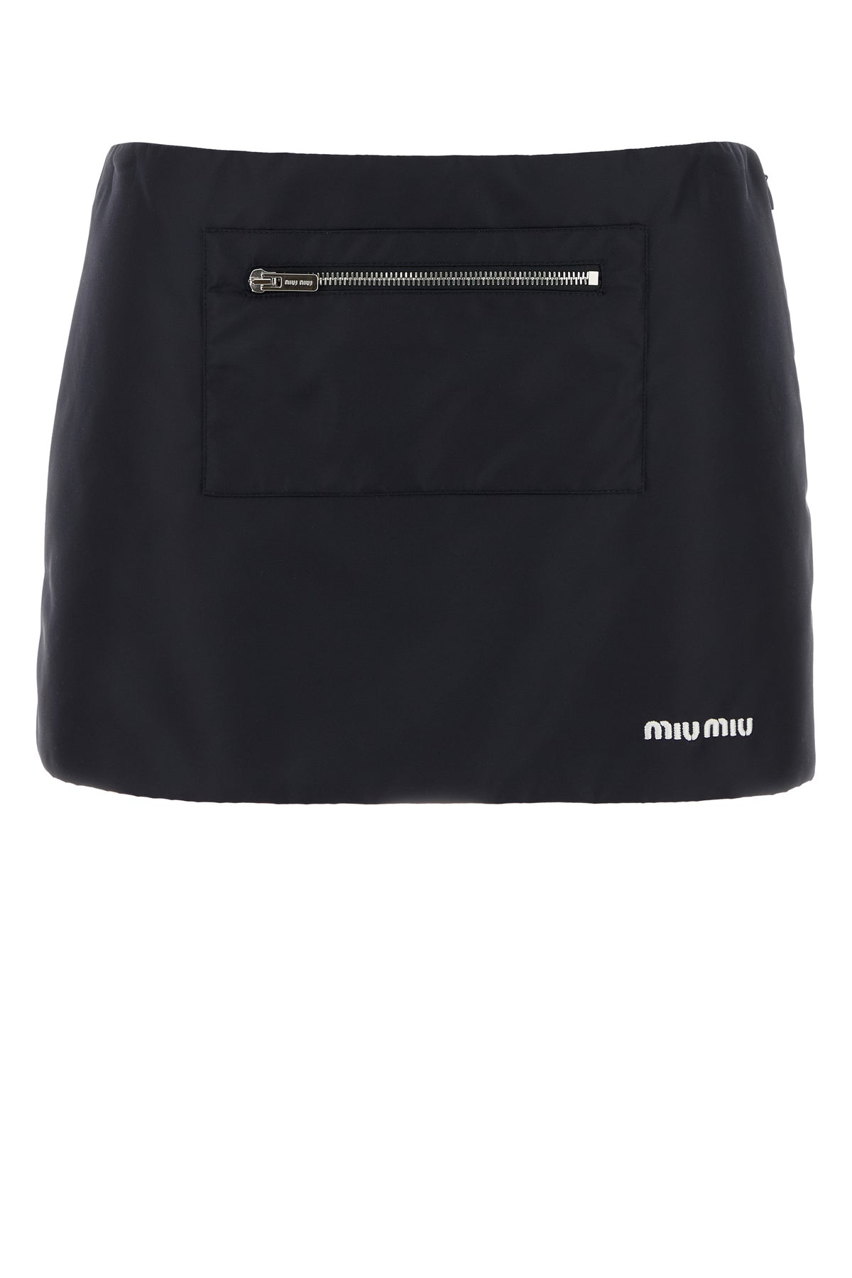 Mini skirt realized in recycled nylon characterized by contrasting embroidered logo at the front.