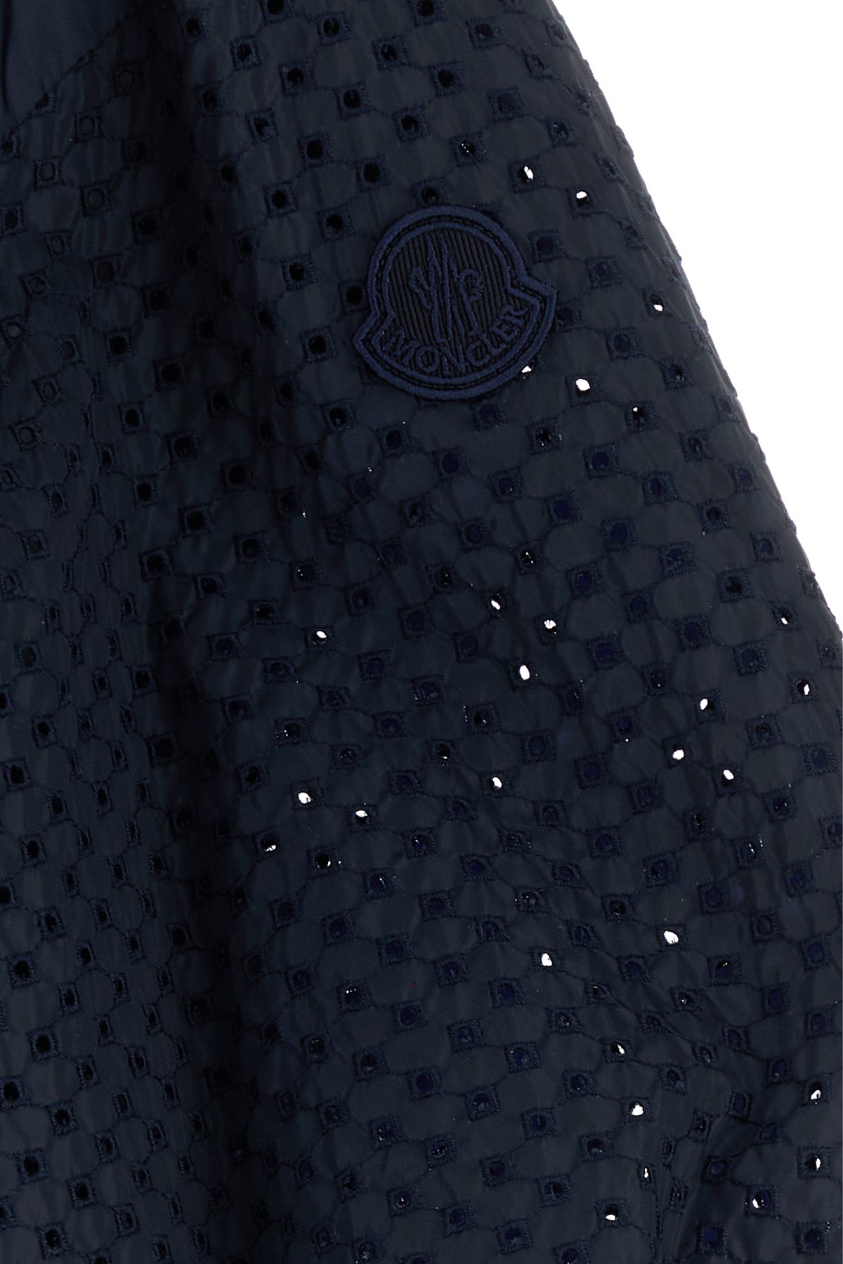 Jacket realized in nylon characterized by peculiar embroideries enriched by logoed patch on the sleeves.