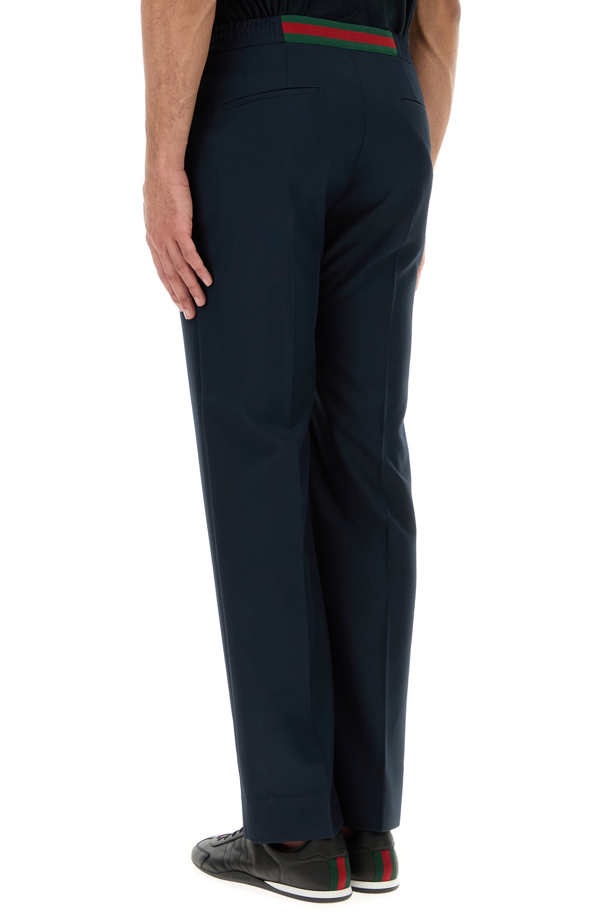 Pant realized in tech panama characterized by tonal GG embroidery at the front enriched by Web ribbon at the back.