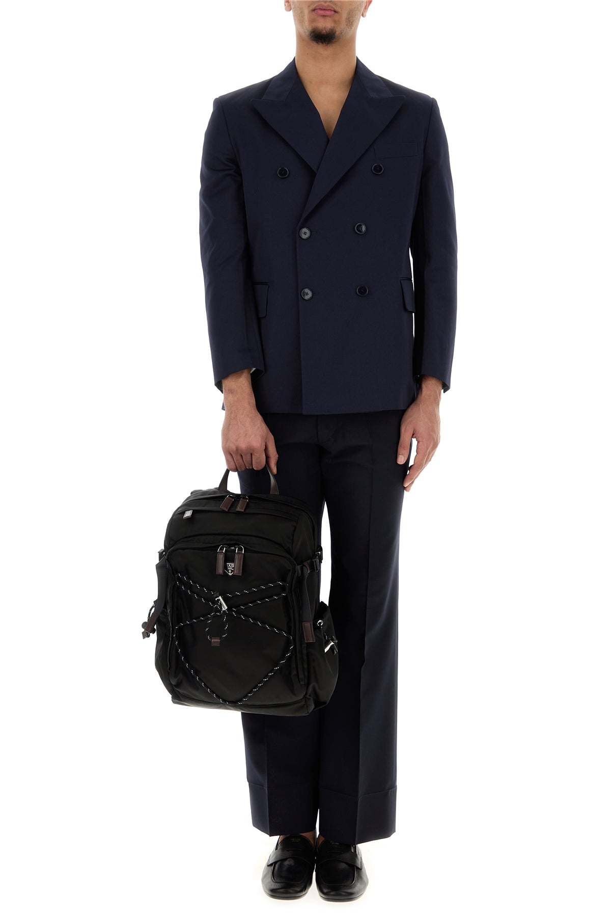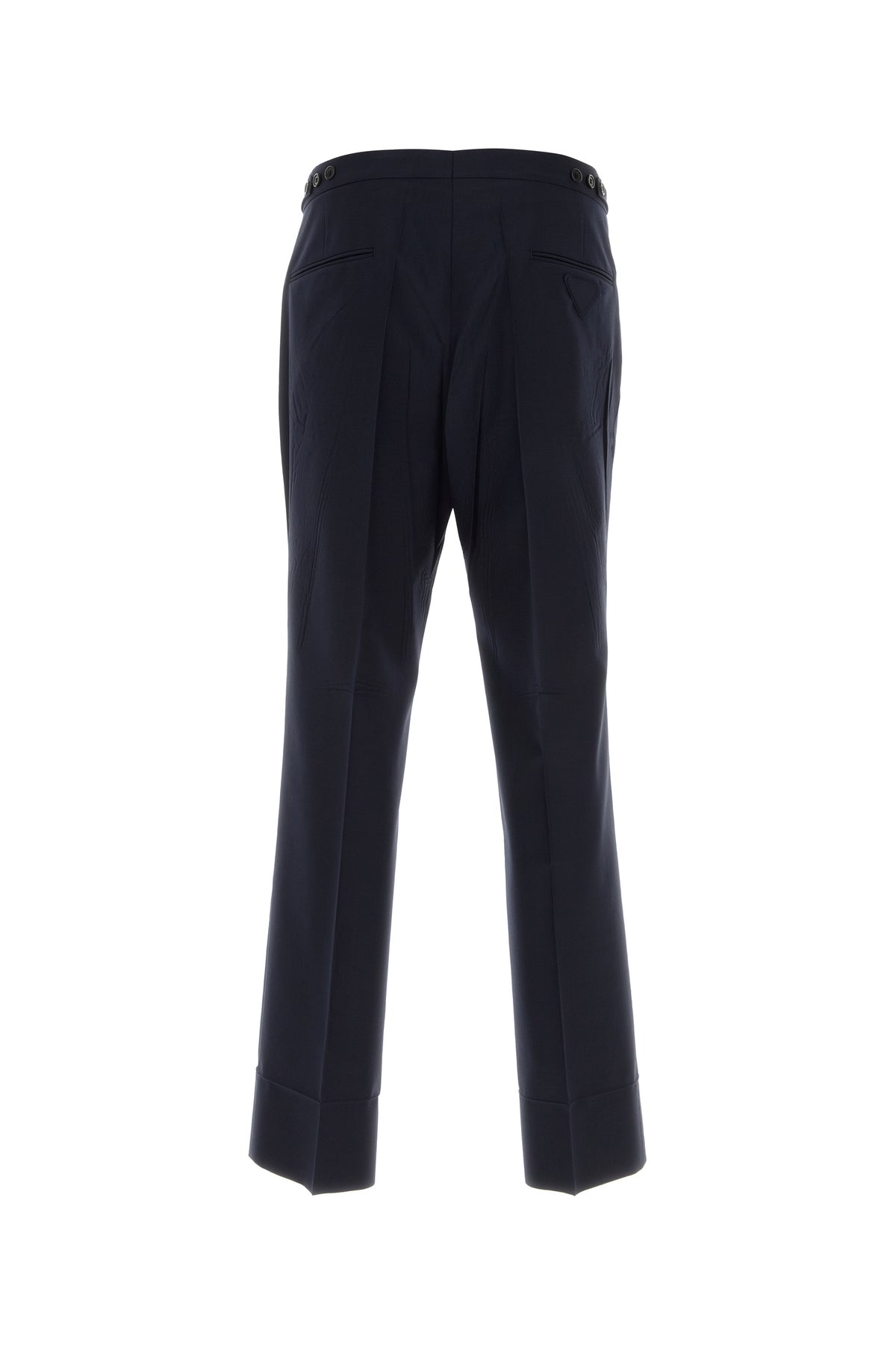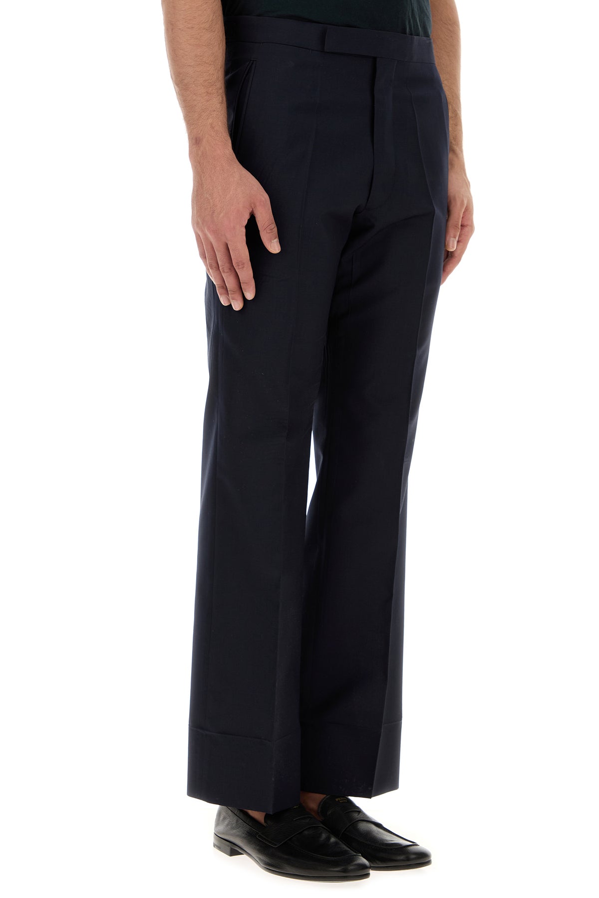 Pant realized in virgin wool and mohair enriched by iconic fabric triangle at the back.