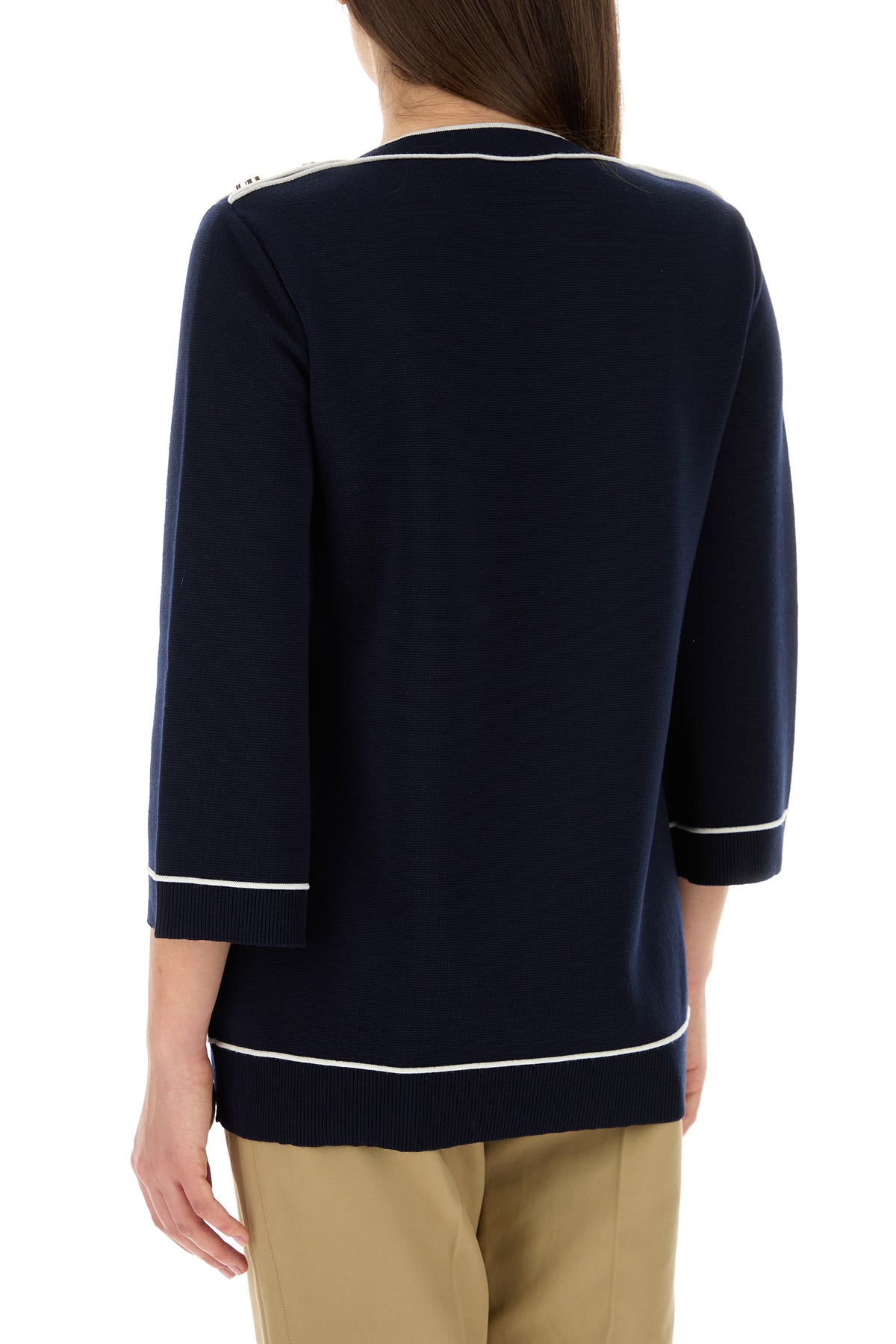 Oversize sweater realized in pure wool enriched by GG metal details at the top.