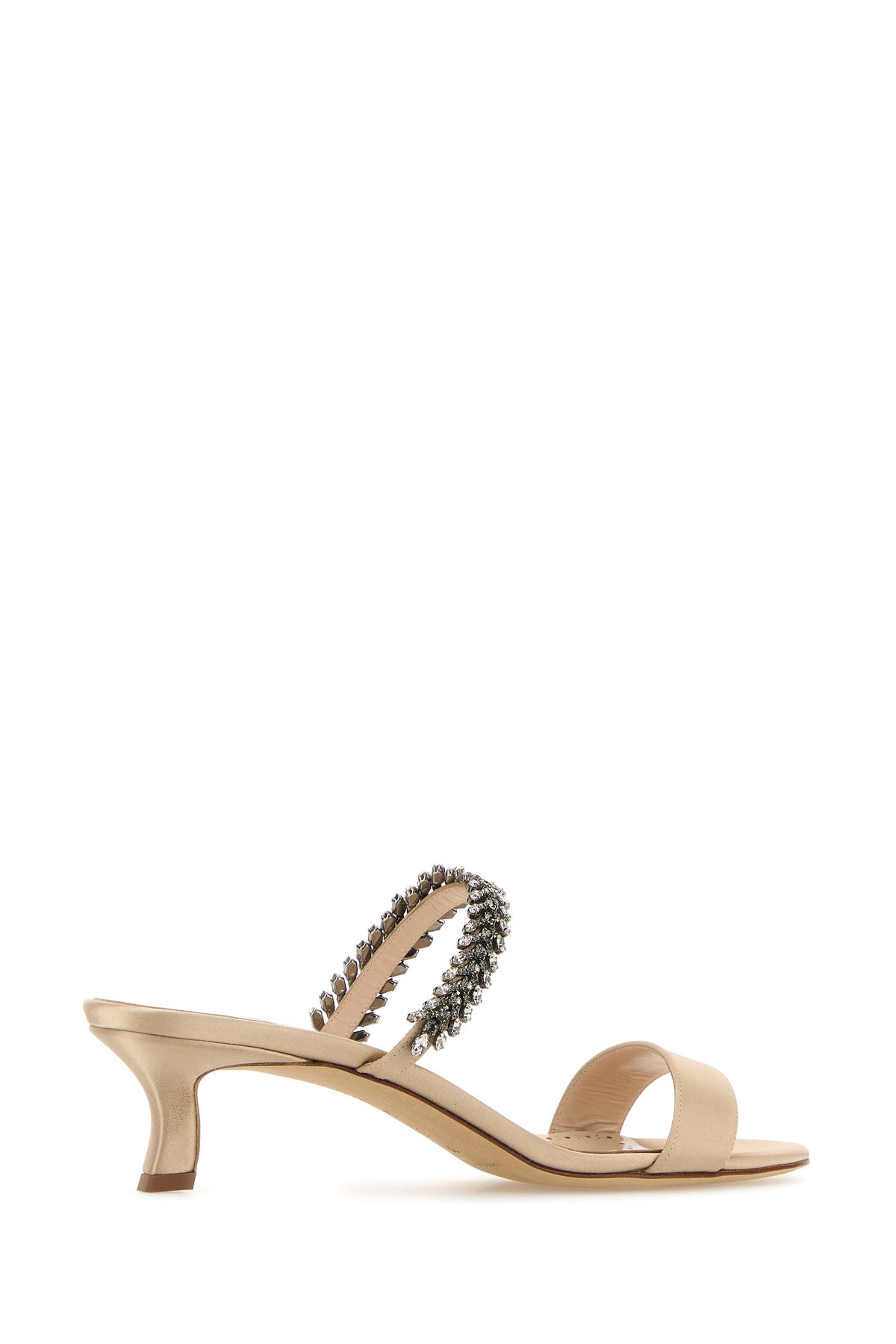 Mules realized in satin enriched by jewel embellishment on the instep.