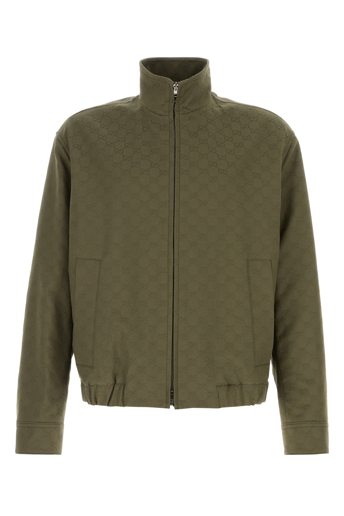 Bomber jacket realized in cotton blend GG fabric.