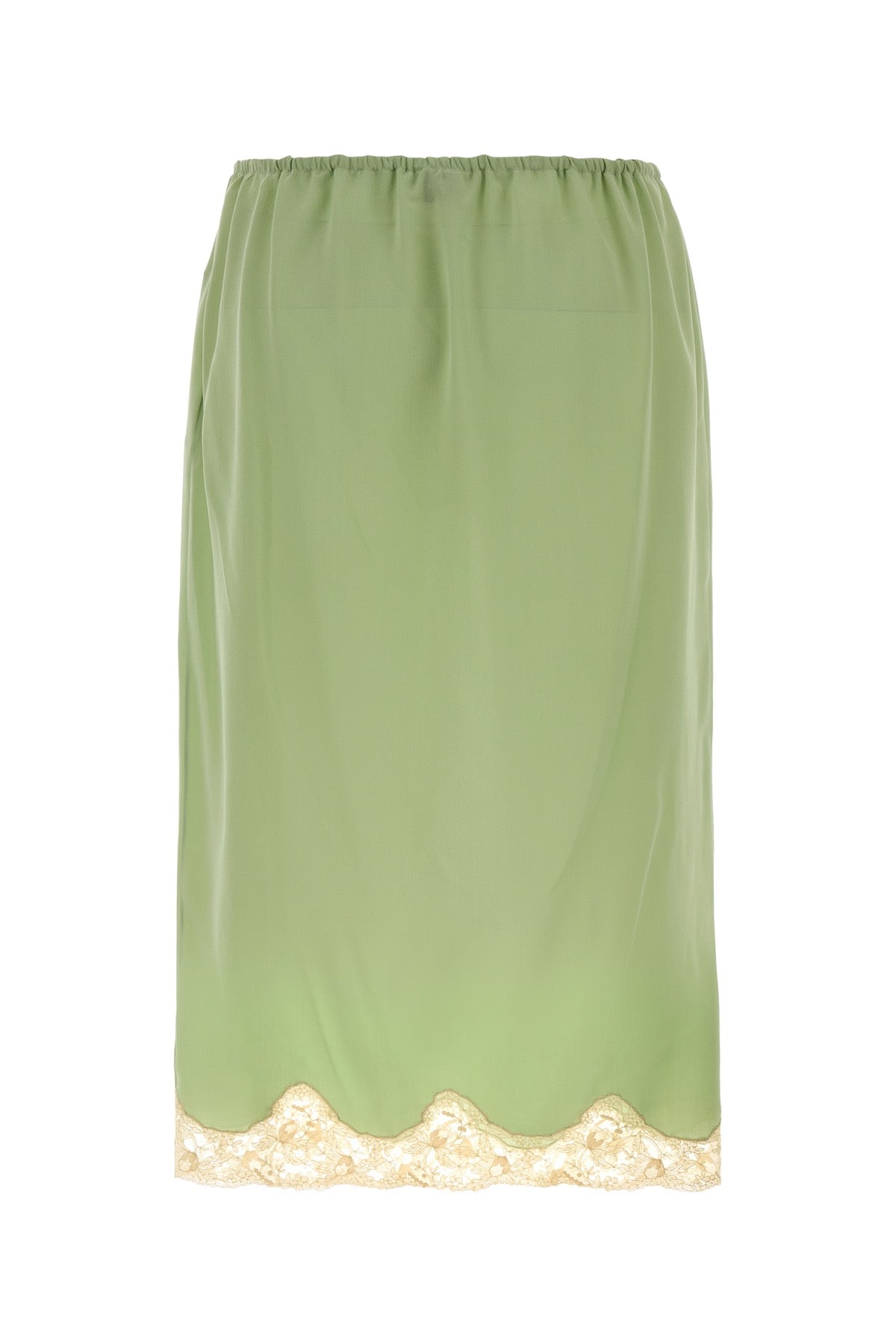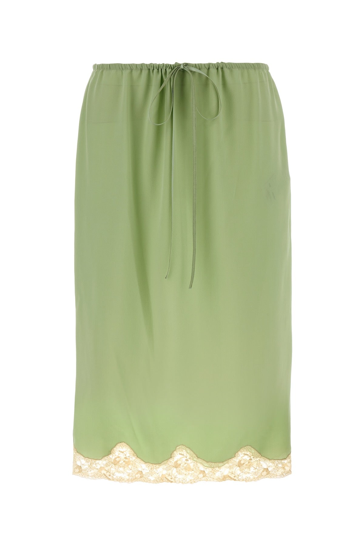 Midi-length skirt realized in pure silk crepe enriched by lacce insert on the hemline.