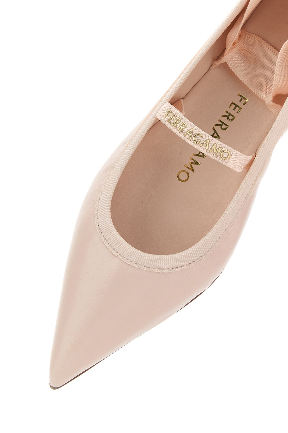 Ballerinas realized in leather enriched by metal lettering logo on the strap on the instep.