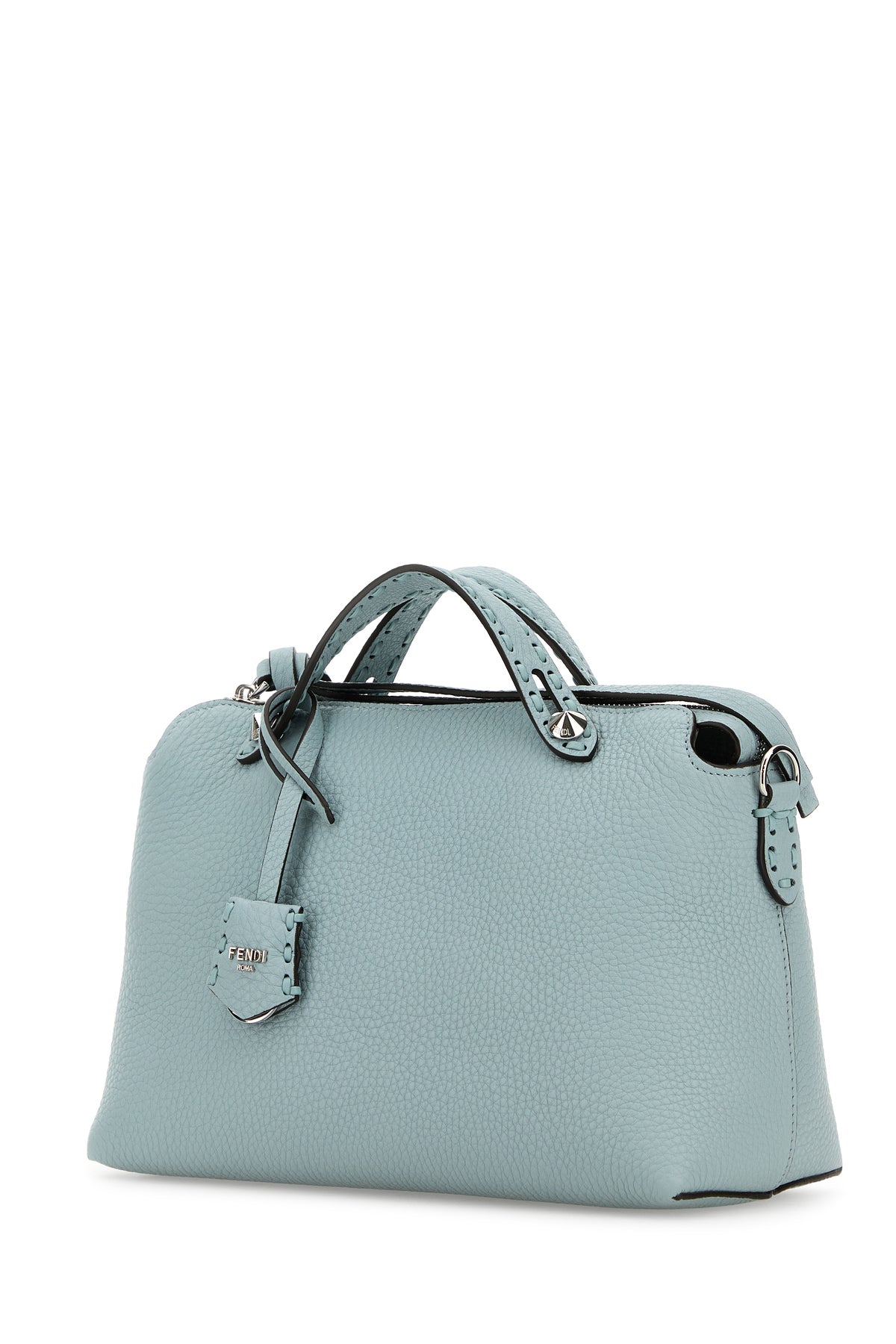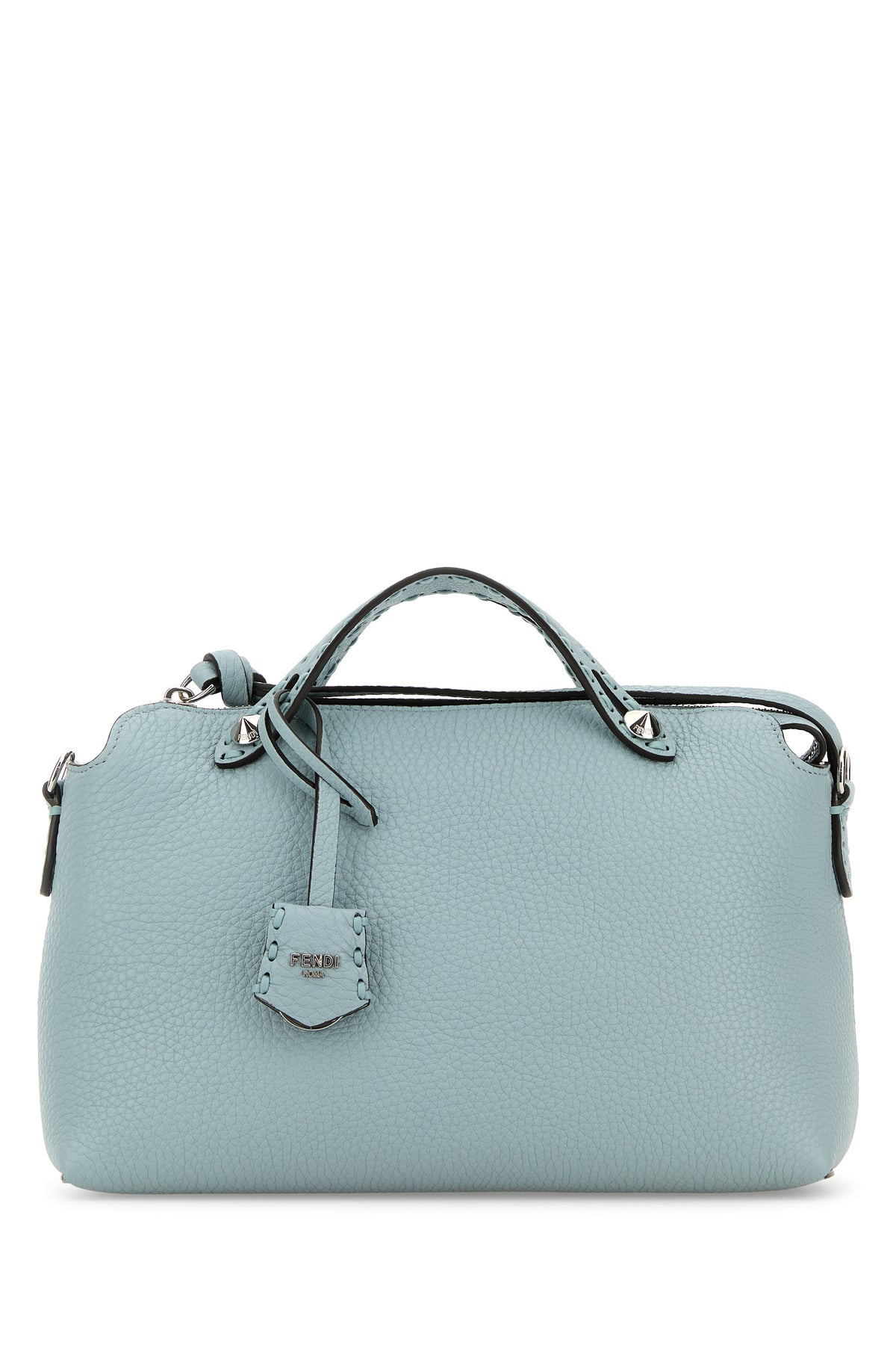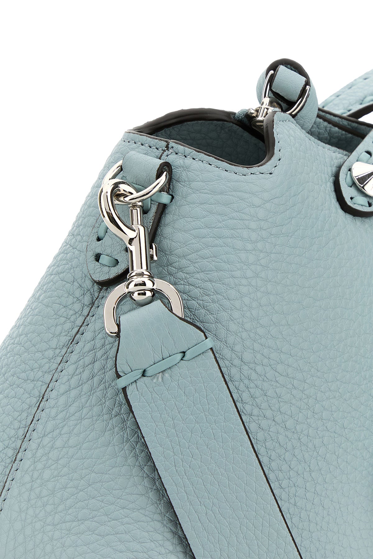 Handbag realized in calf leather enriched by detachable tonal leather keyring accessory with metal lettering logo.