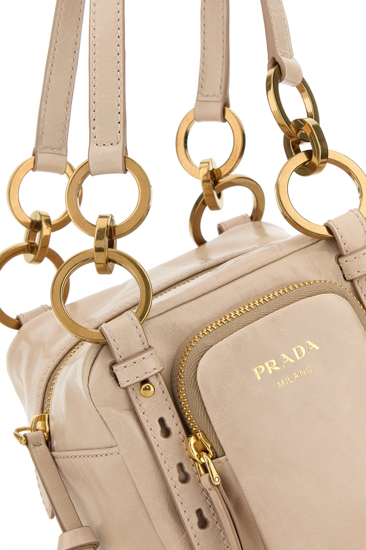 Handbag realized in calf leather characterized by laminated printed logo at the front.