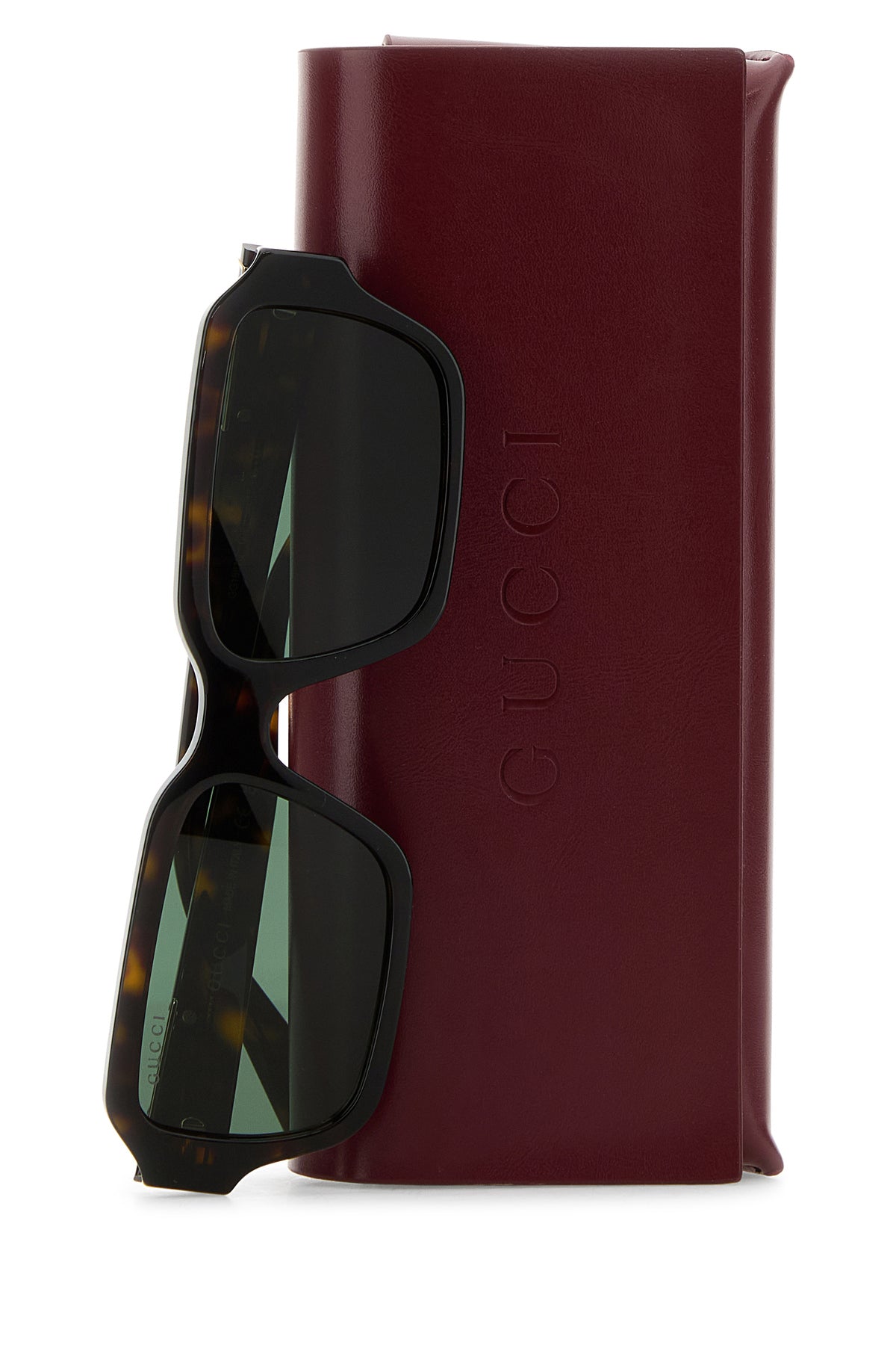 Sunglasses realized in acetate characterized by animal print on the entire surface and embossed logo on the arms.