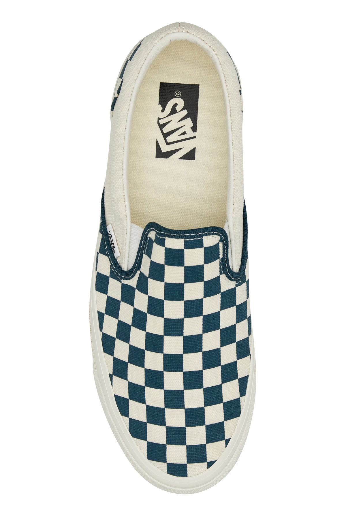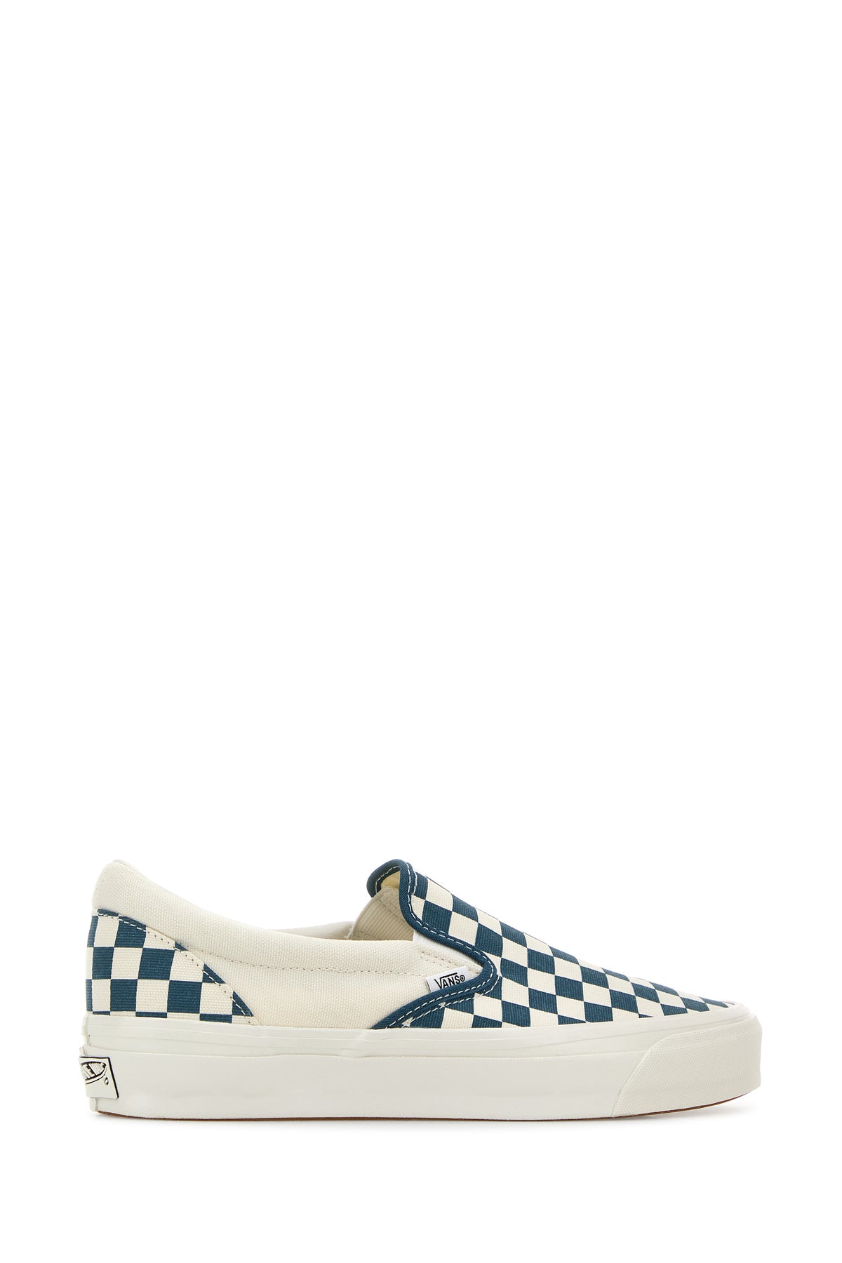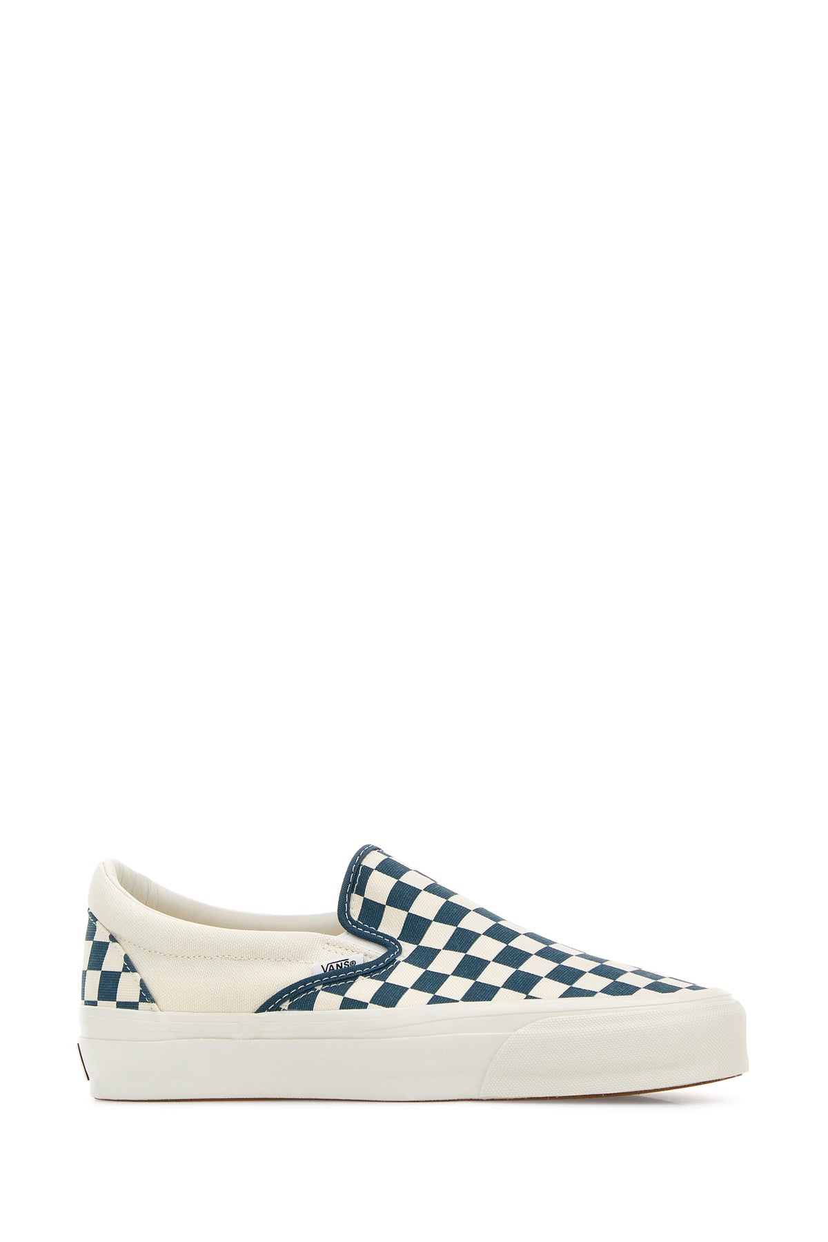 Slip ons realized in canvas characterized by Checkerboard print on the entire surface enriched by logoed label at the back.