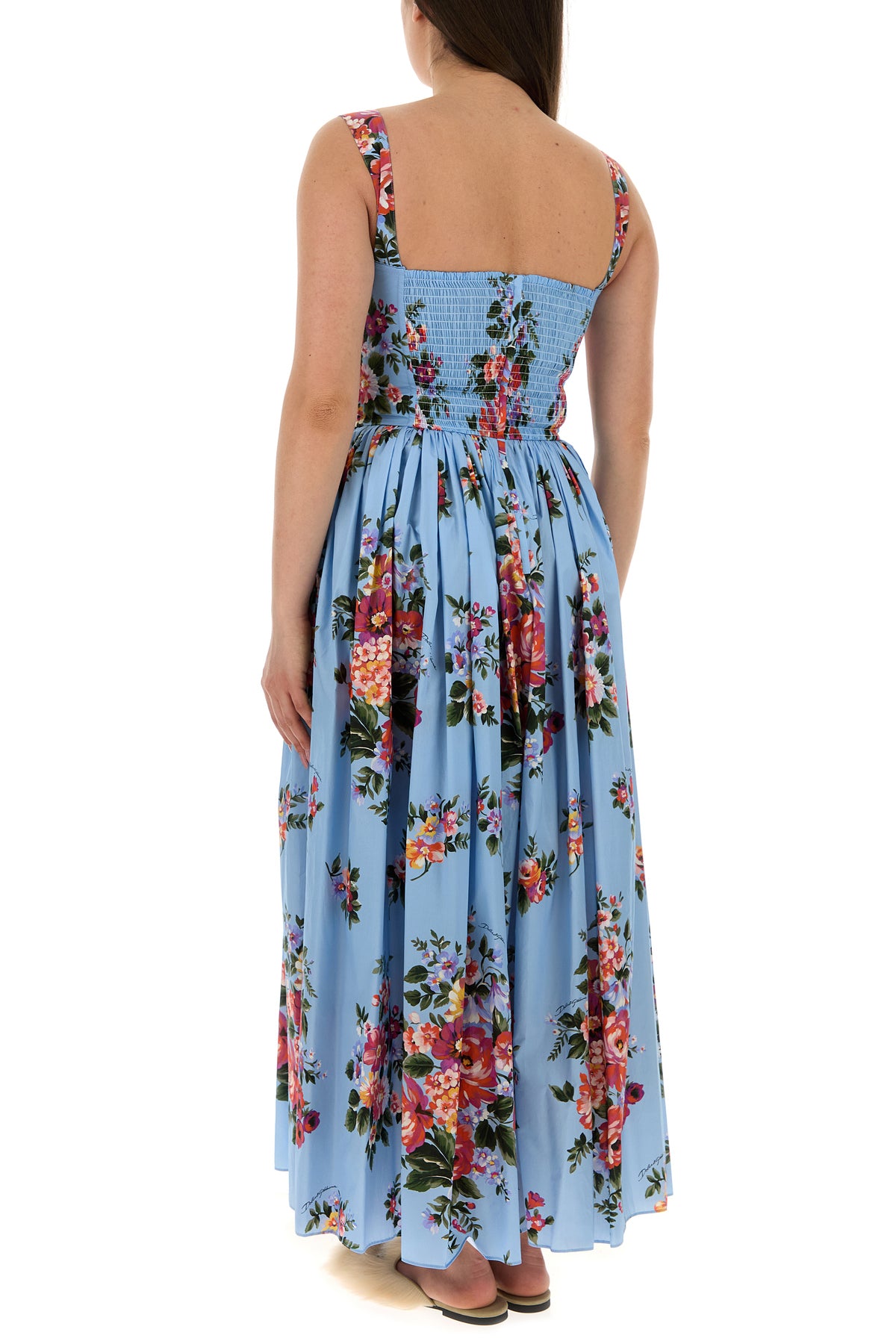 Midi-length dress realized in pure cotton characterized by floral print on the entire surface.