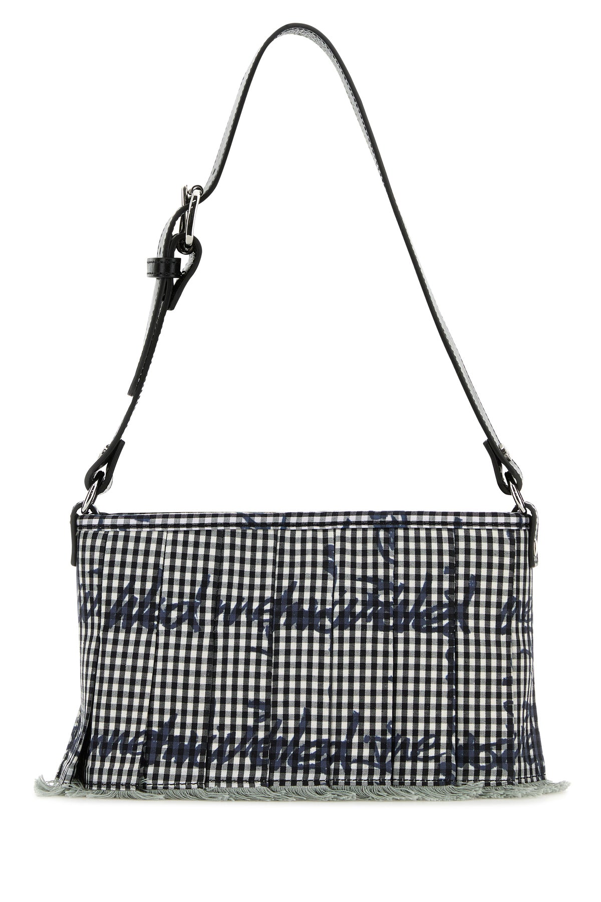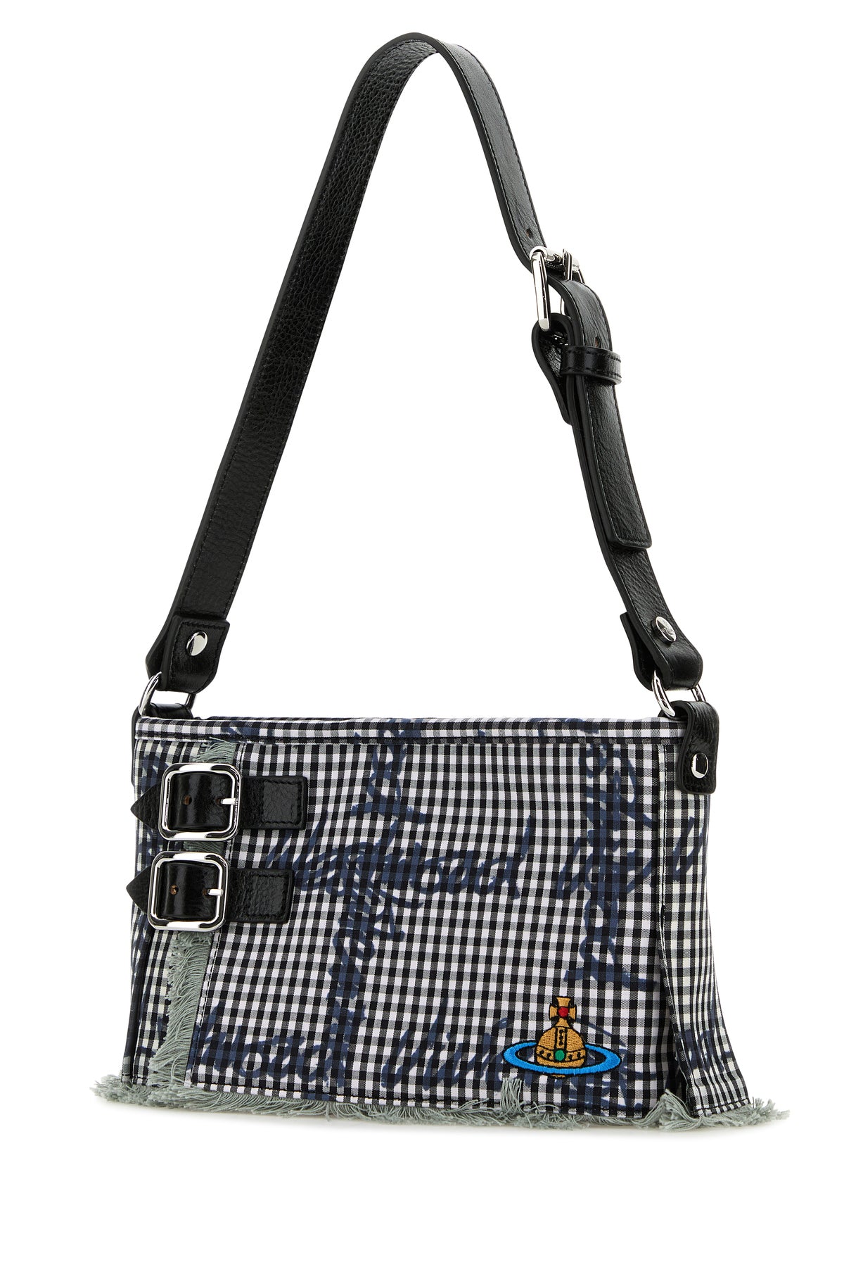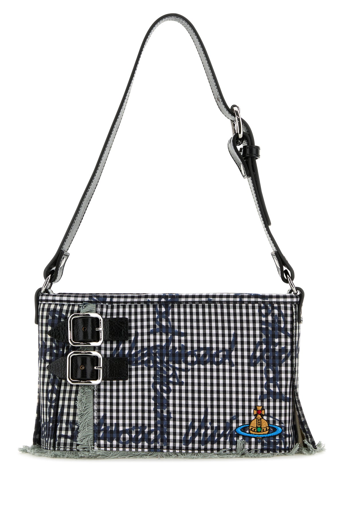 Shoulder bag realized in fabric characterized by check print on the entire surface and Orb embroidery at the front.