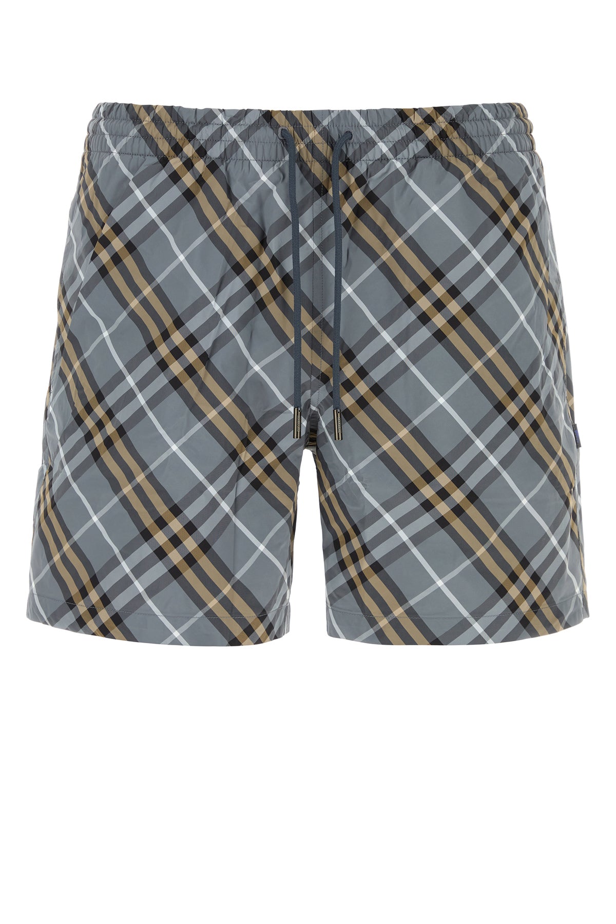 Swimming shorts realized in nylon characterized by Burberry Check motif print on the entire surface enriched by Equestrian Knight label on the side.