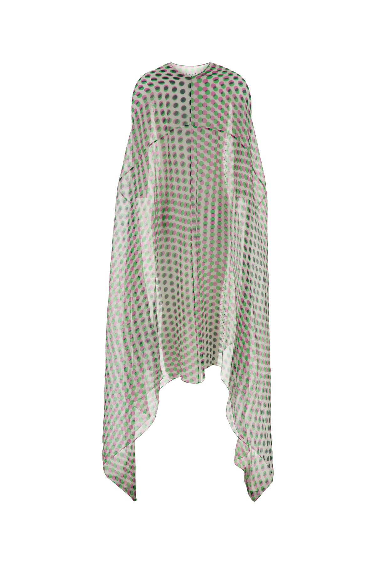Dress realized in pure silk characterized by polka dot print on the entire surface enriched by rhinestones at the front.