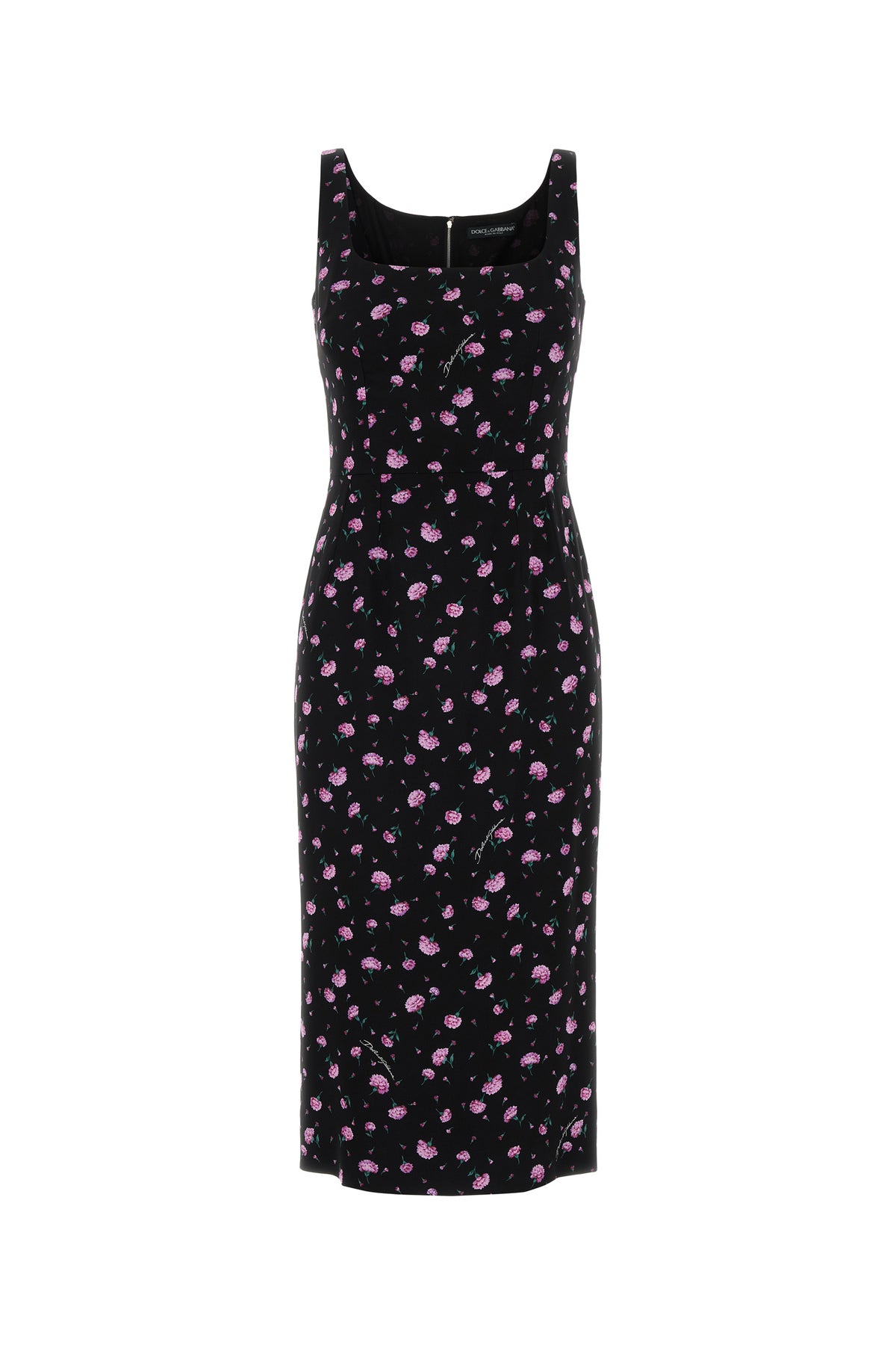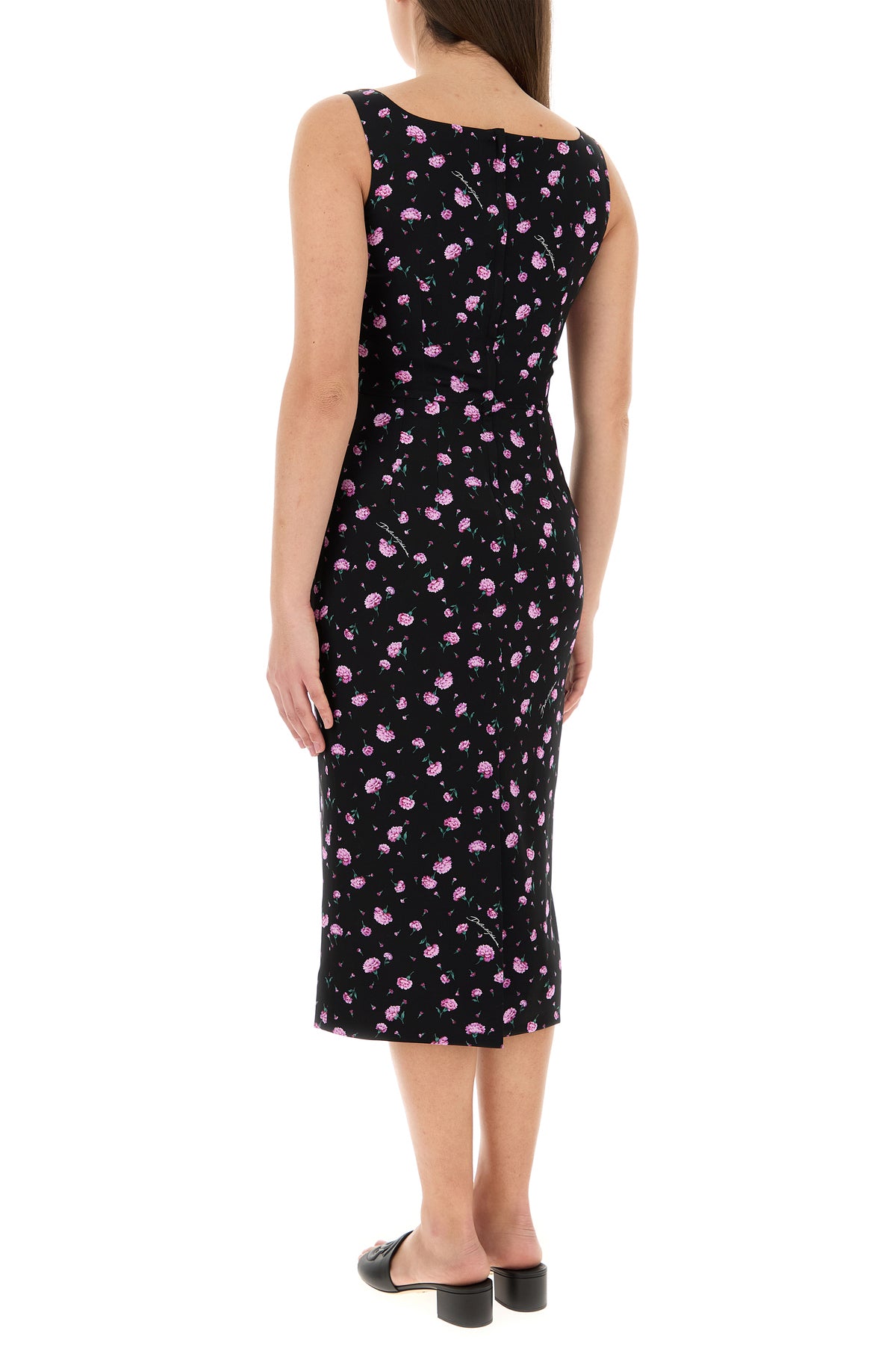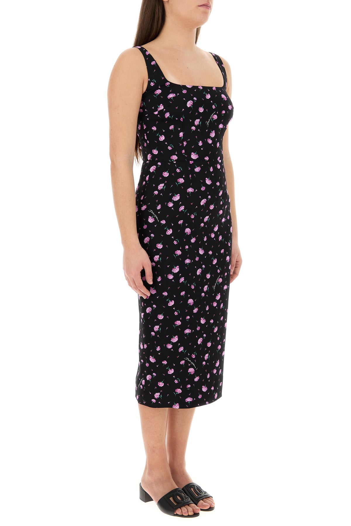 Midi-length dress realized in stretch silk characterized by Carnations print on the entire surface.