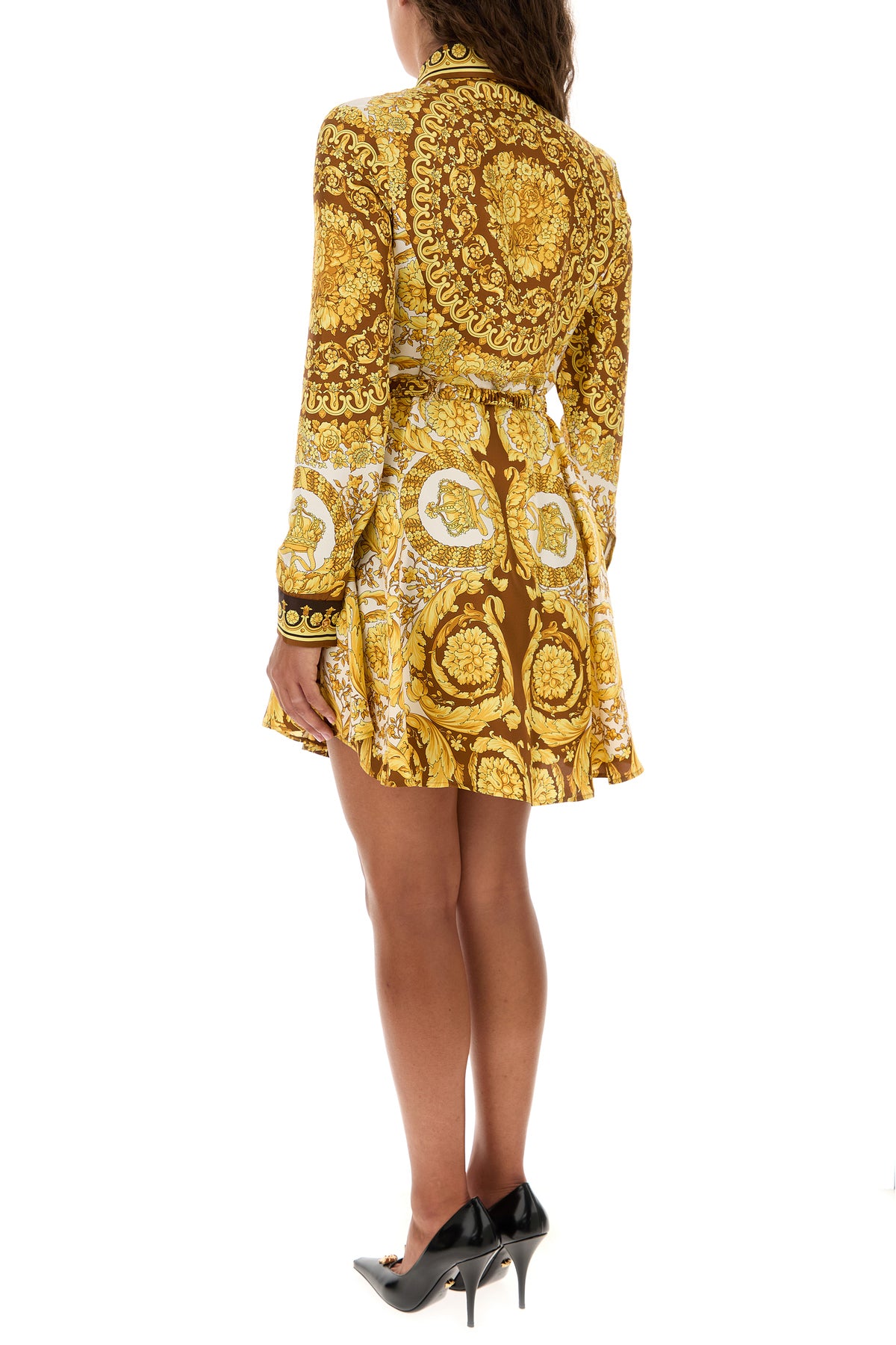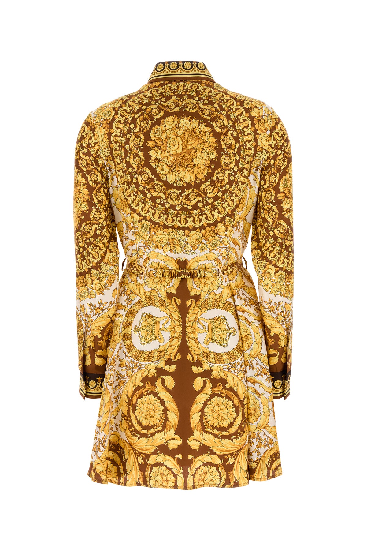 Shirt dress realized in pure silk twill characterized by peculiar print on the entire surface.