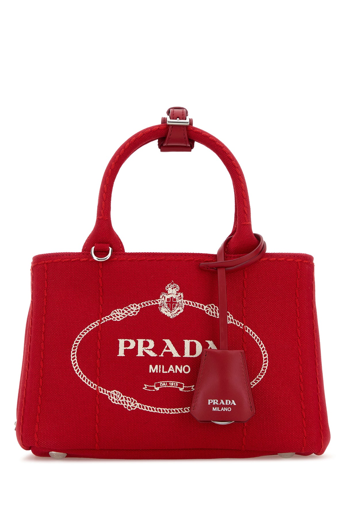 Red canvas mini Prada Jardinière handbag