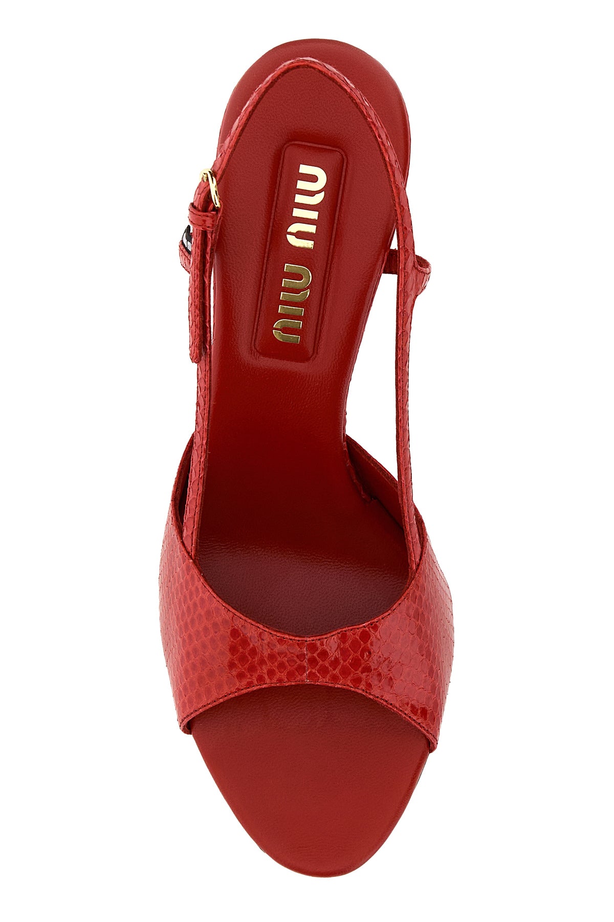 Sandals realized in reptile motif embossed leather.