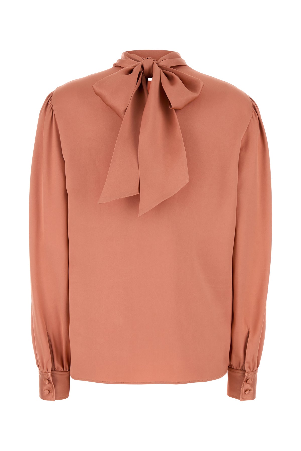 Blouse realized in pure silk satin characterized by laces to tie on the neck.