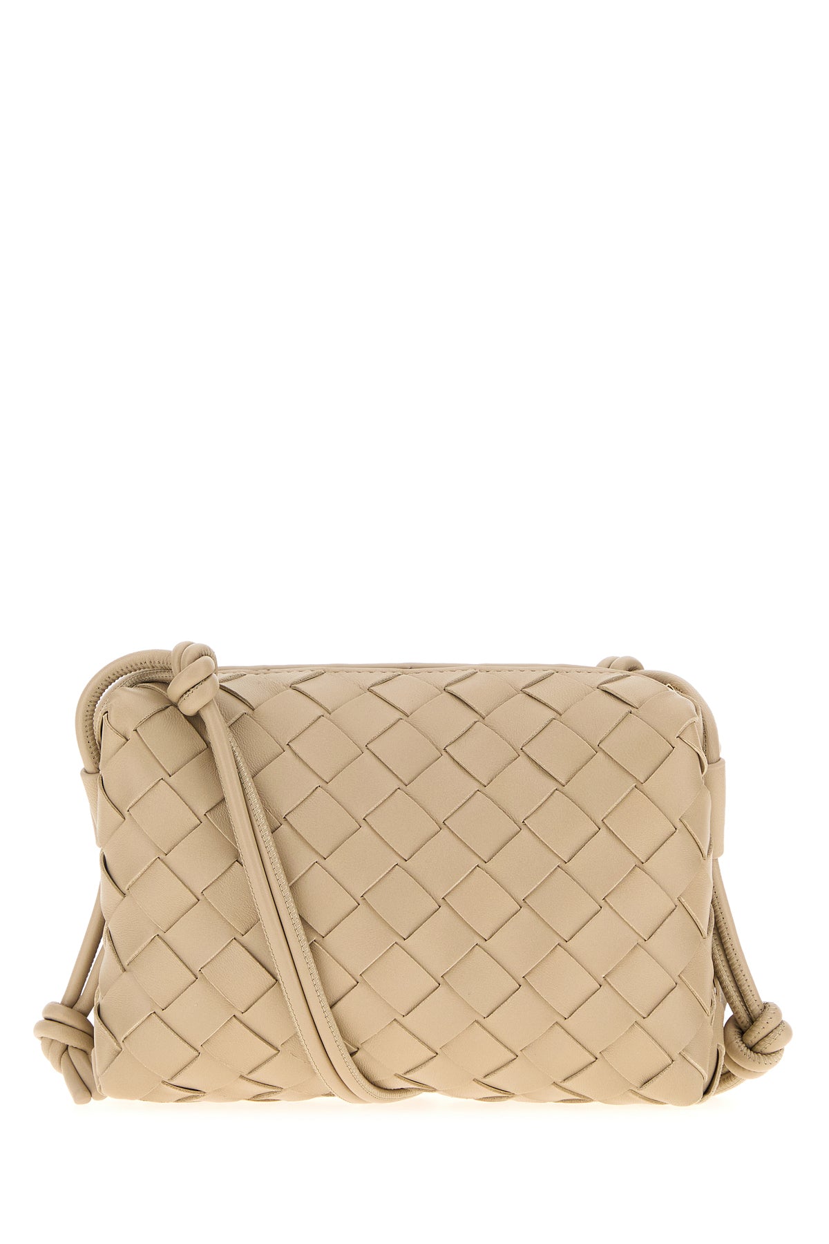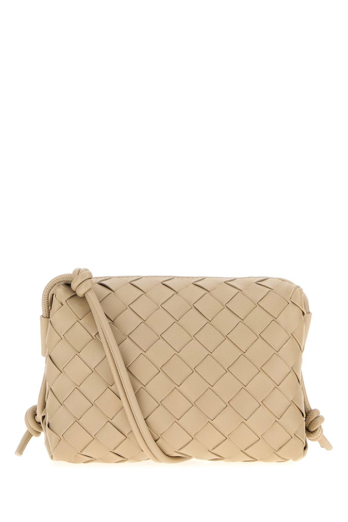 Crossbody bag realized in lamb leather characterized by iconic Intrecciato motif on the entire surface.