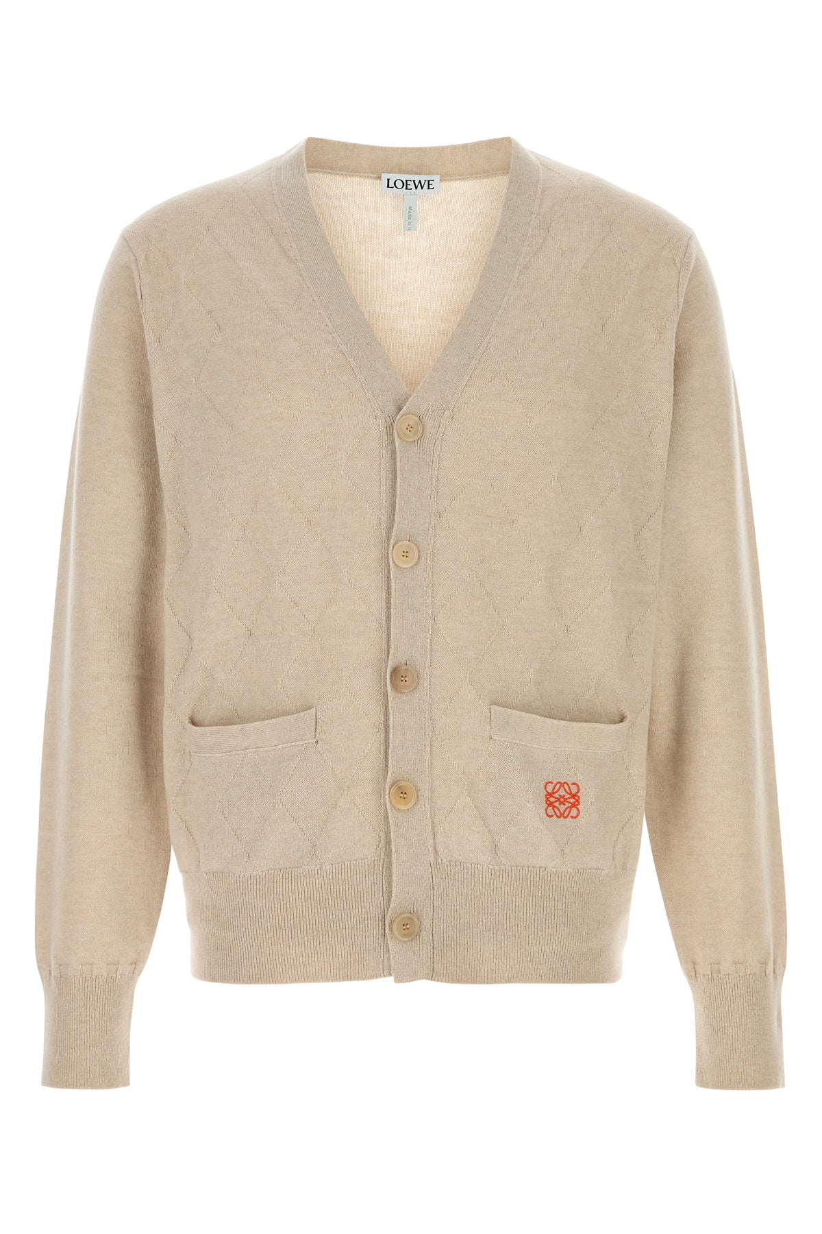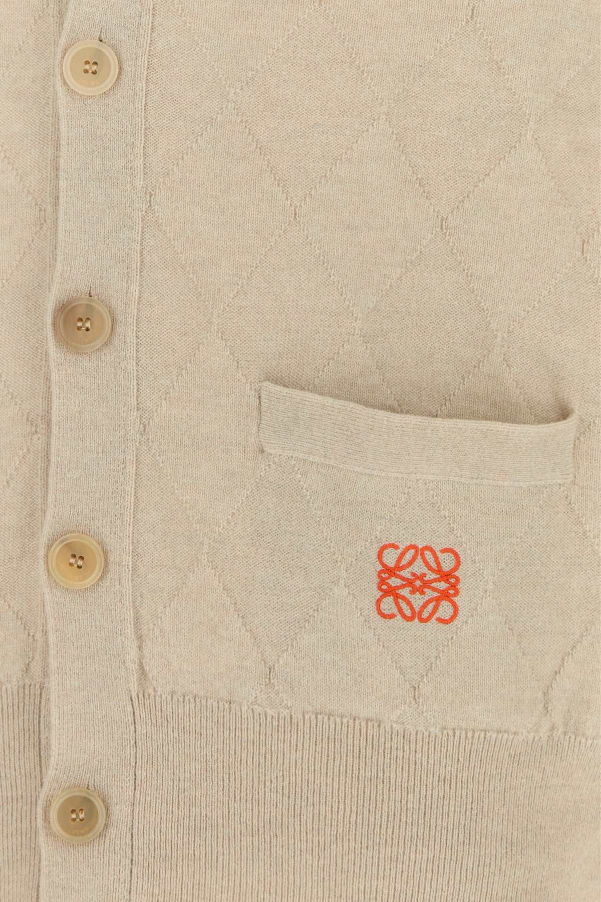 Cardigan realized in wool and cashmere characterized by checked embroidery on the entire surface and Anagram embroidery at the front.