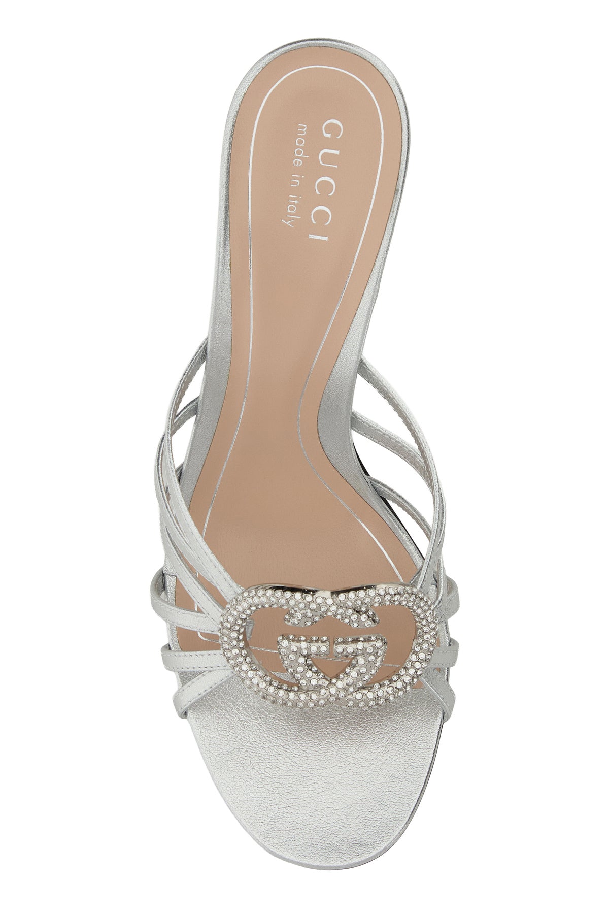 Mules realized in laminated leather enriched by GG metal detail with rhinestones on the instep.