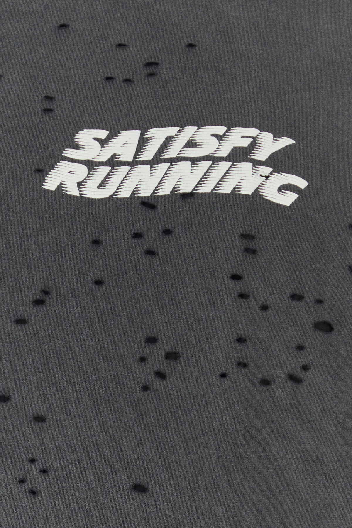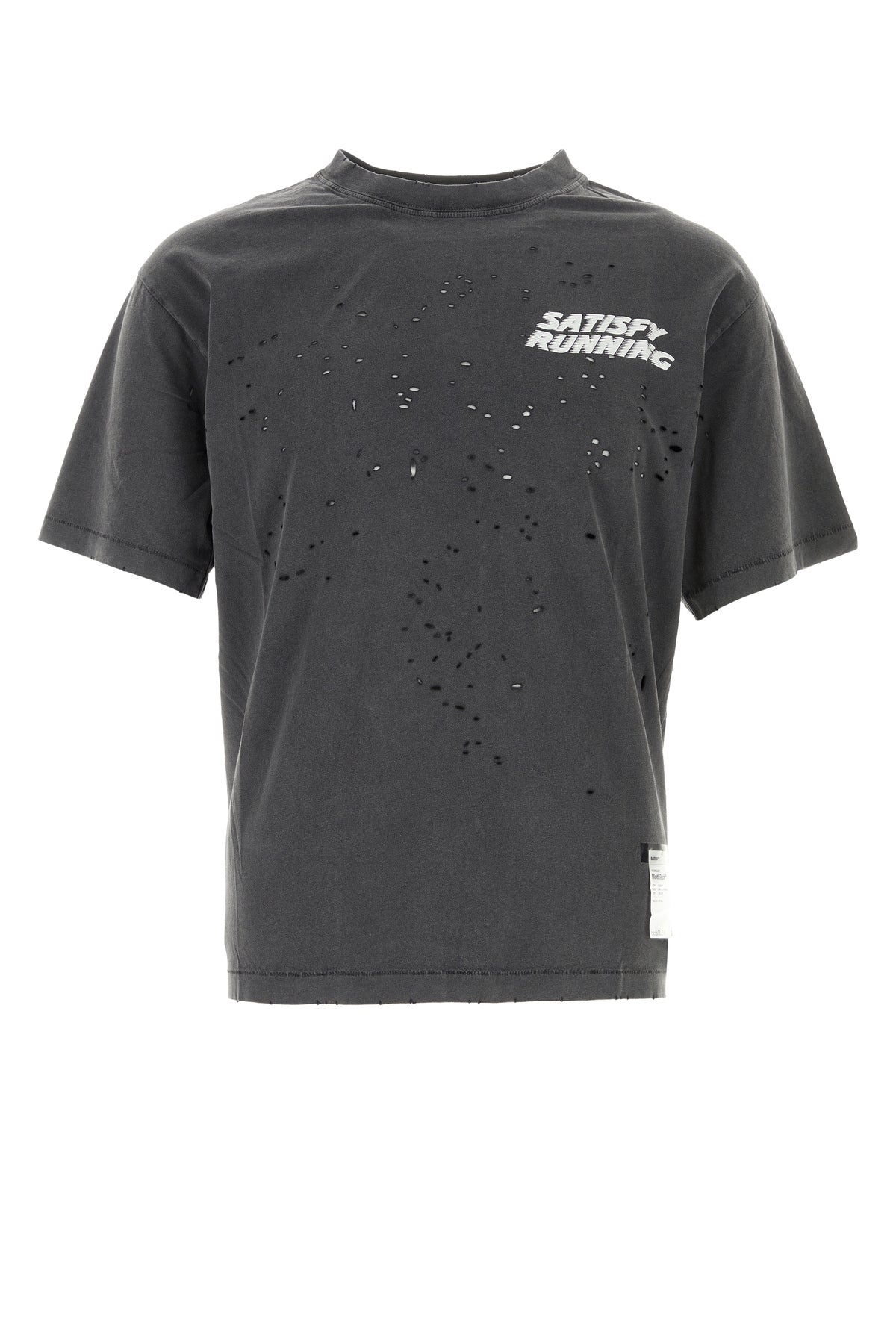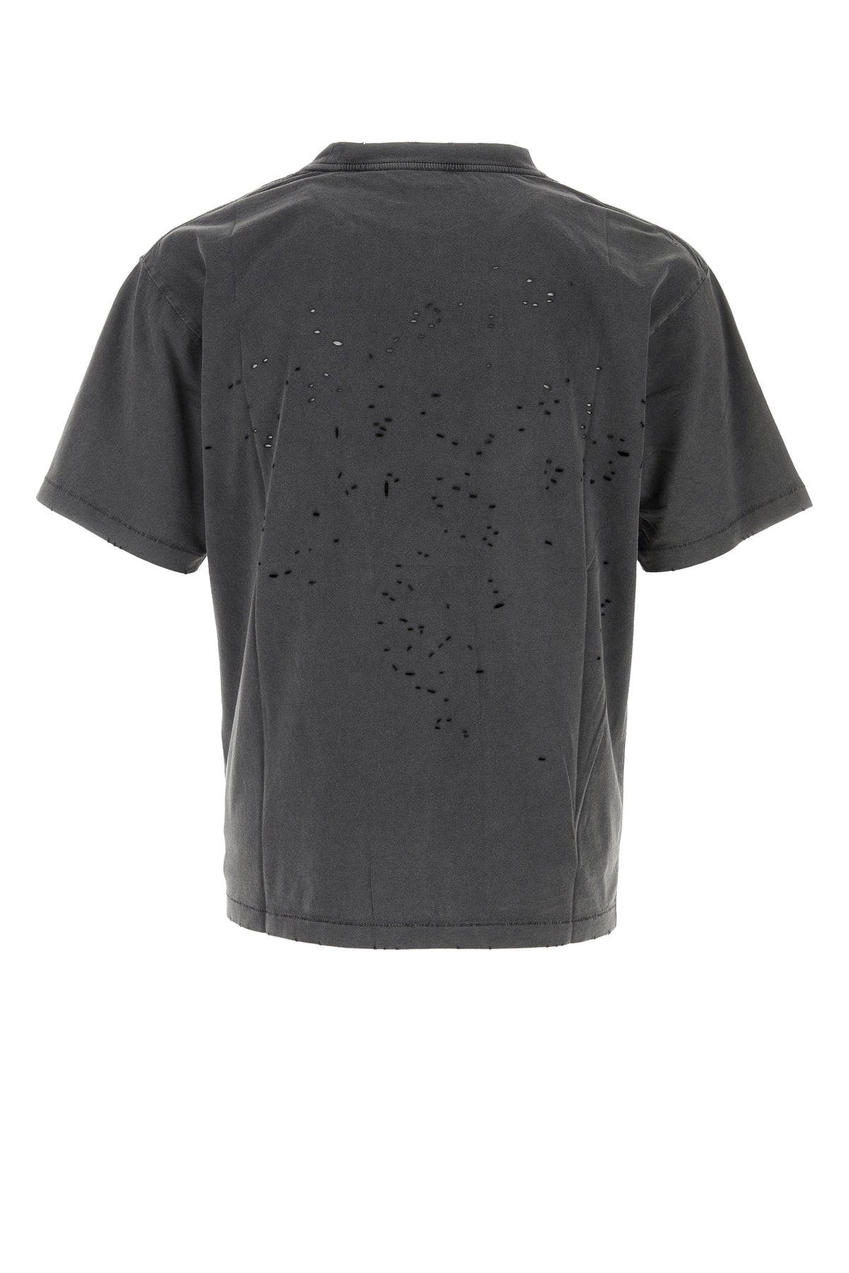 T-shirt realized in stonewashed and distressed pure organic cotton characterized by logoed print on the chest enriched by logoed label on the hemline.