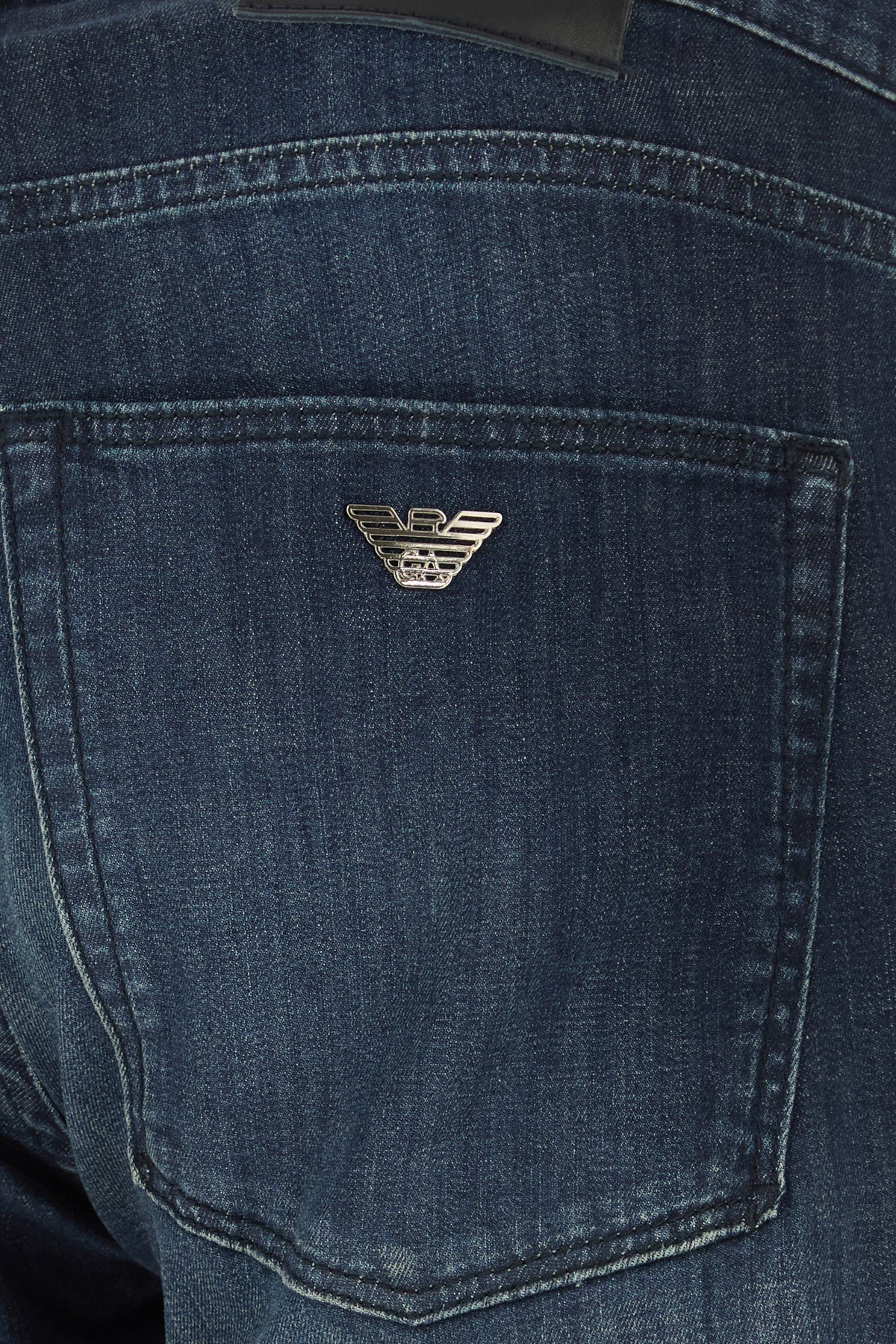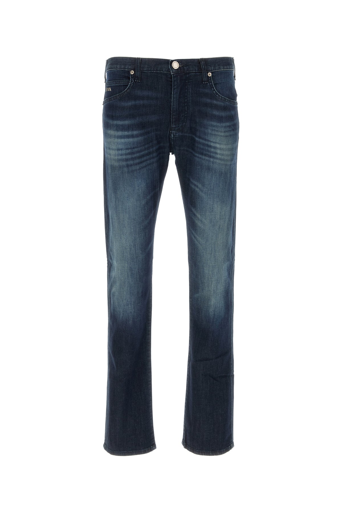 Jeans realized in stonewashed stretch cotton denim enriched by logoed metal detail at the front and at the back.