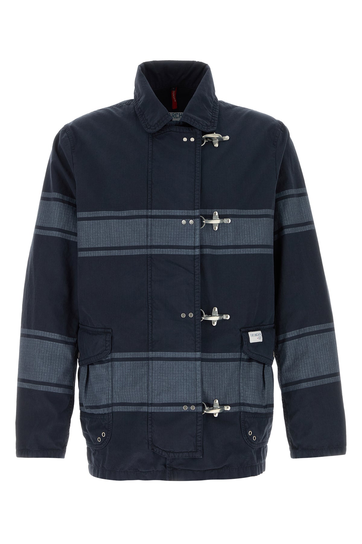 Jacket realized in pure cotton characterized by striped print on the entire surface enriched by logoed label at the front.