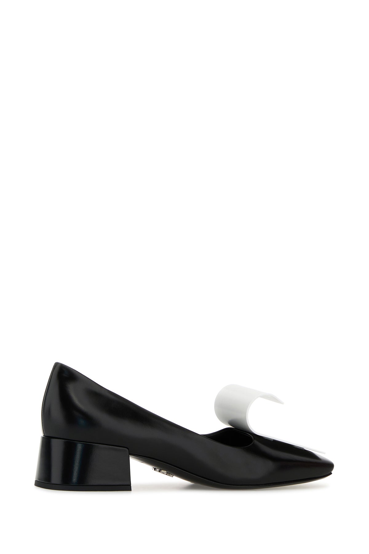 Pumps realized in smooth leather characterized by peculiar patch on the toe.
