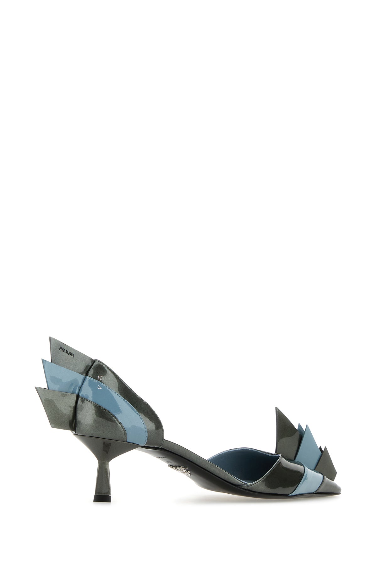 Pumps realized in patent leather enriched by peculiar patch on the toe and on the heel.
