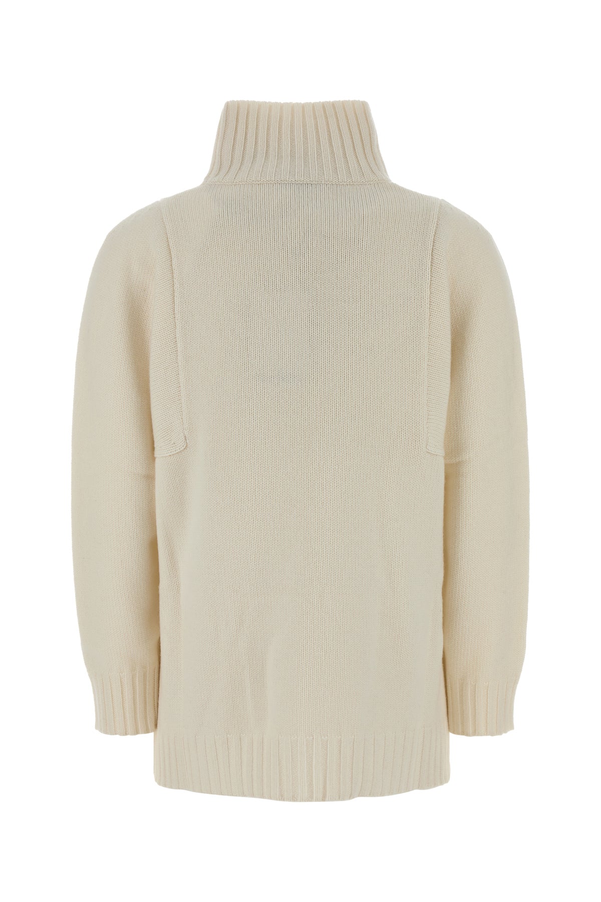 Sweater realized in pure cashmere characterized by mock turtleneck.