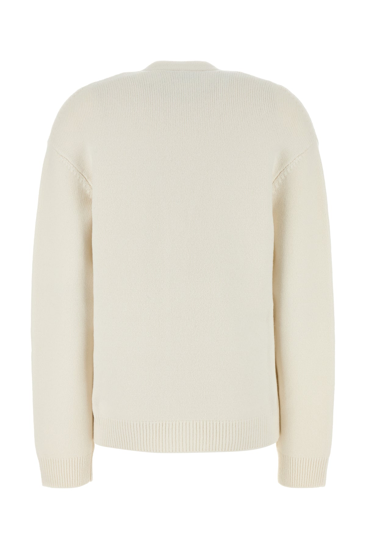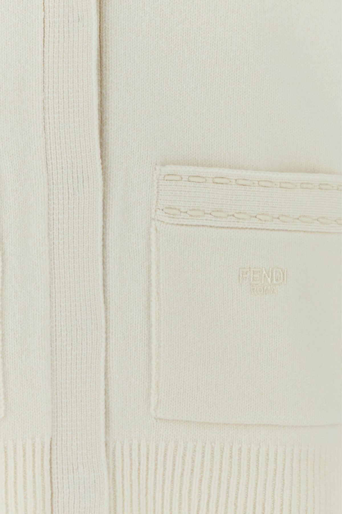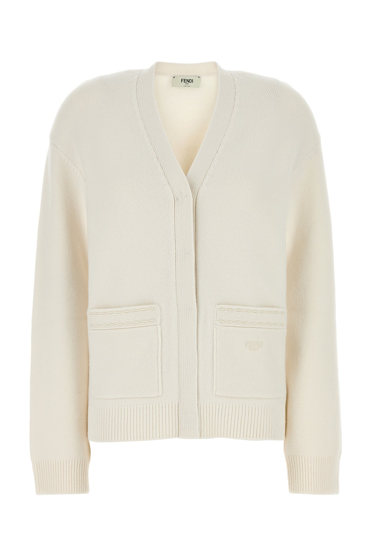 Cardigan realized in cashmere blend characterized by tonal embroidered logo on the hemline.