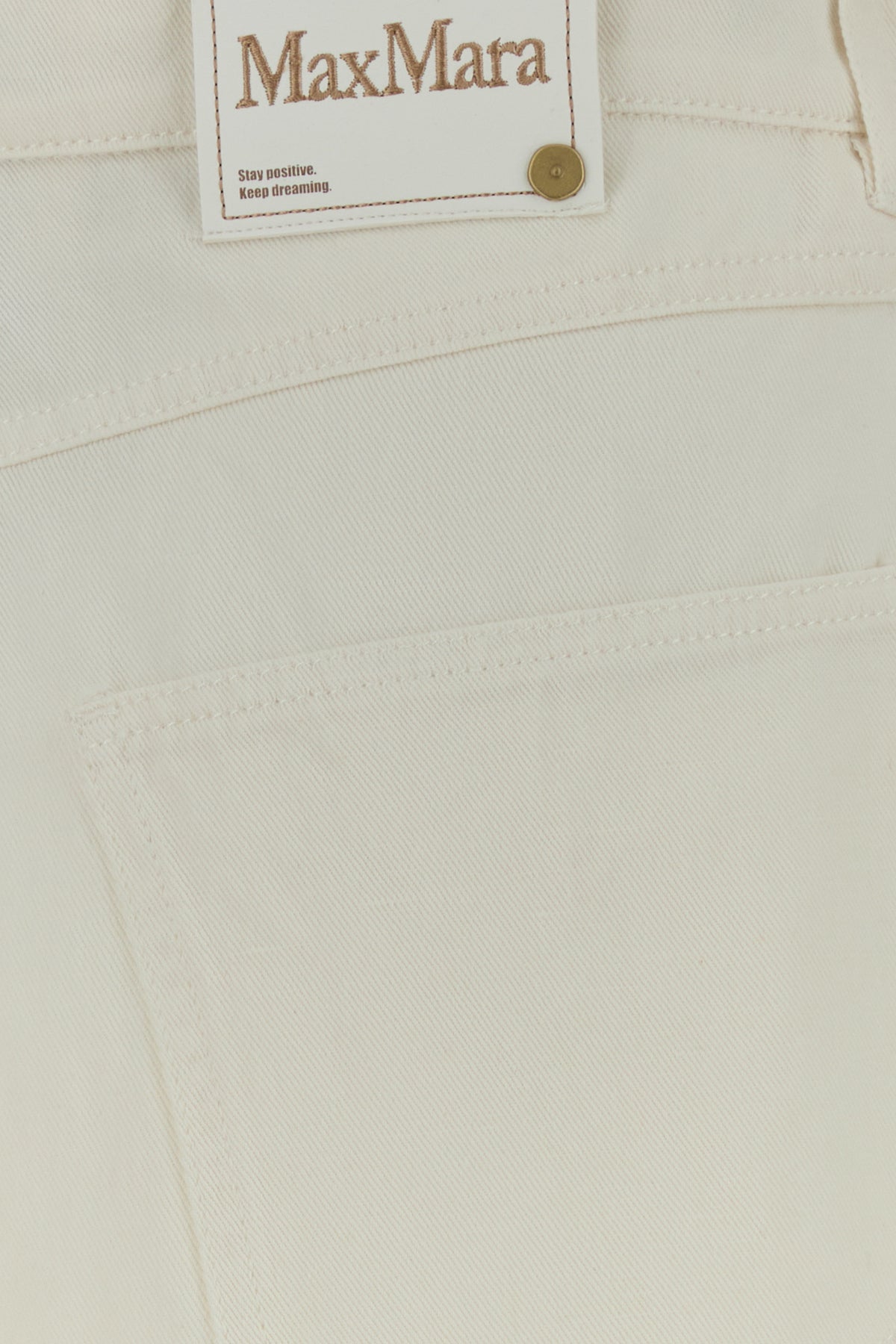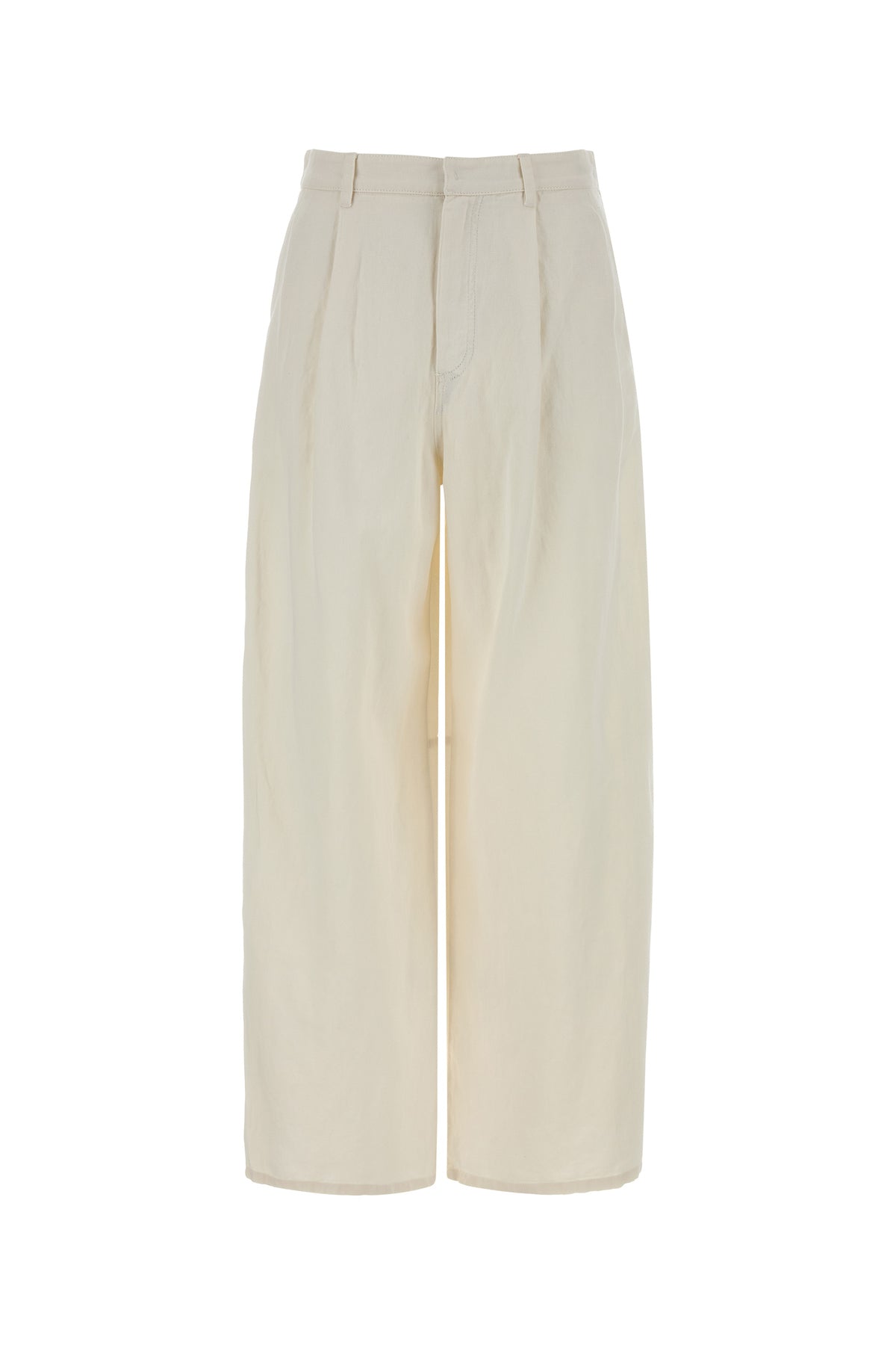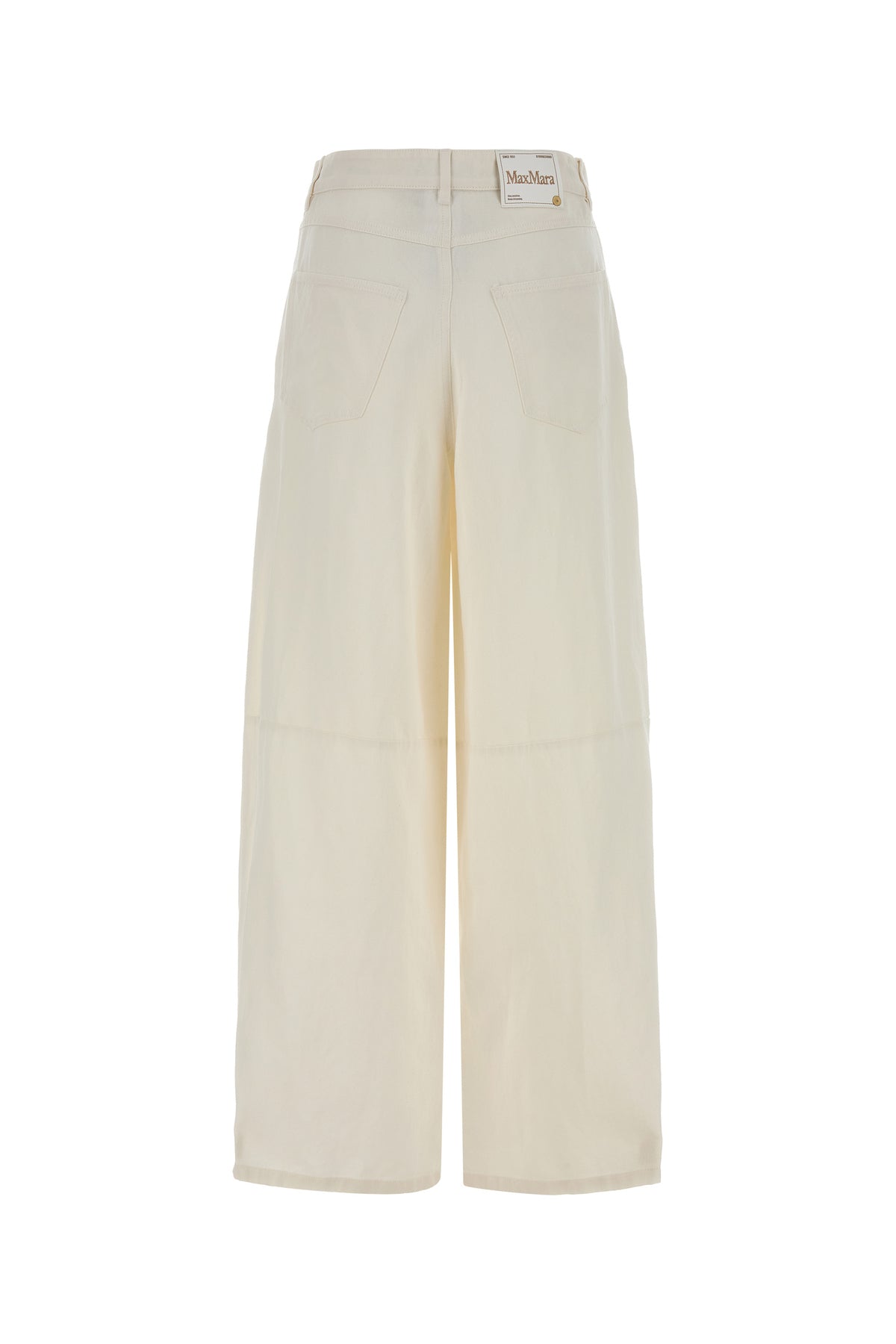 Wide-leg jeans realized in cotton and silk denim enriched by logoed label at the back.