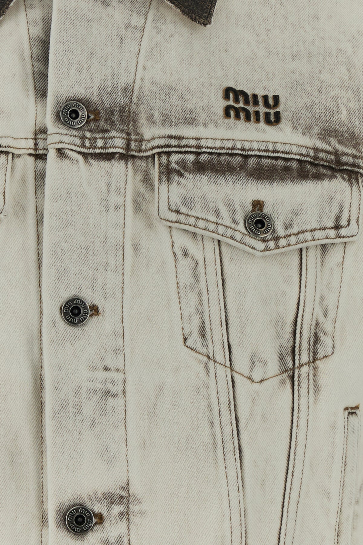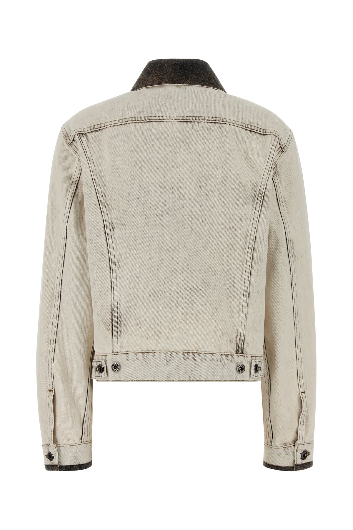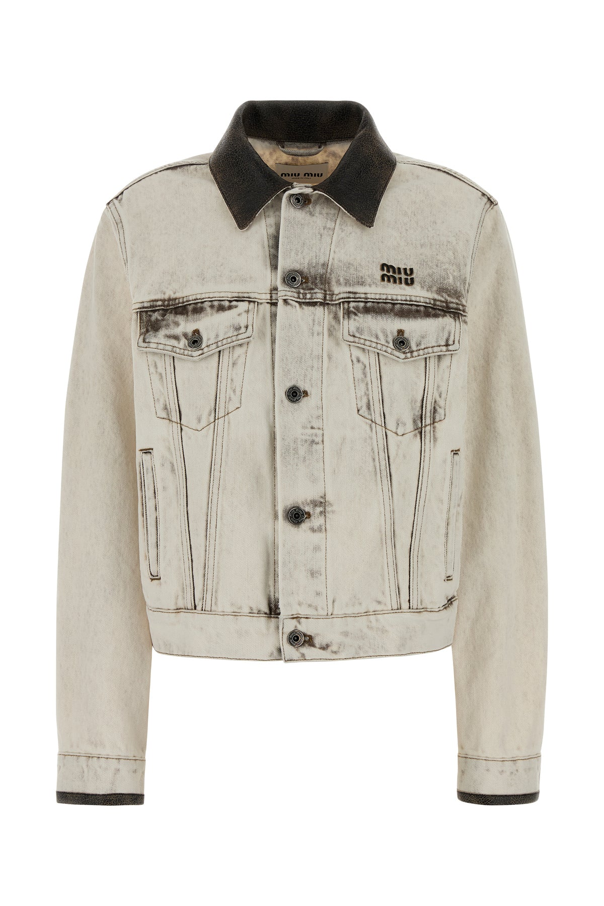 Jacket realized in bleached-effect pure cotton denim enriched by leather logoed label on the chest.