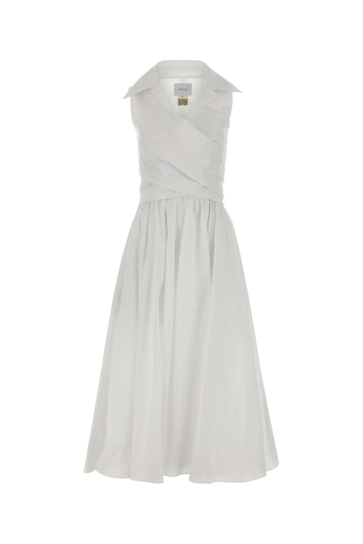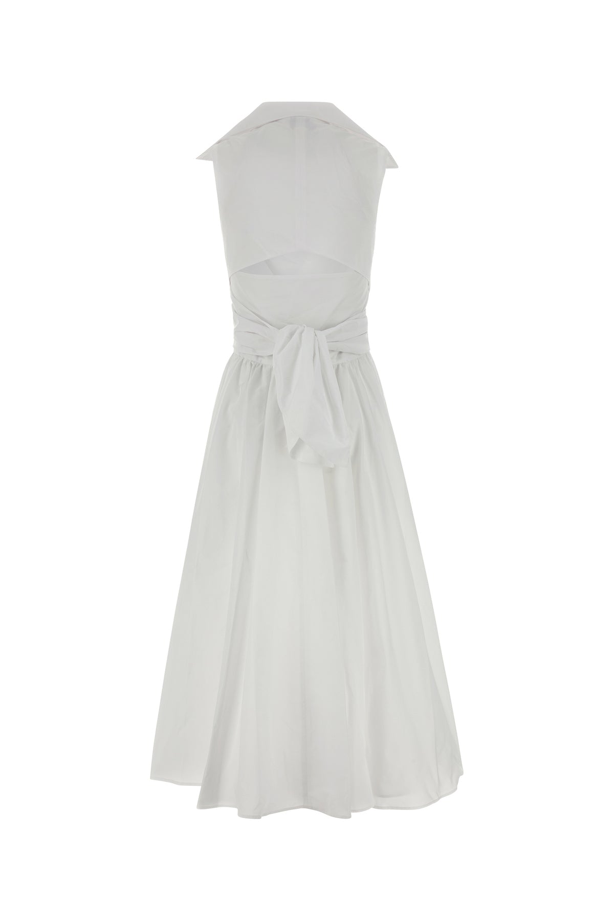 Midi-length dress realized in faille enriched by ribbons to tie at the back.