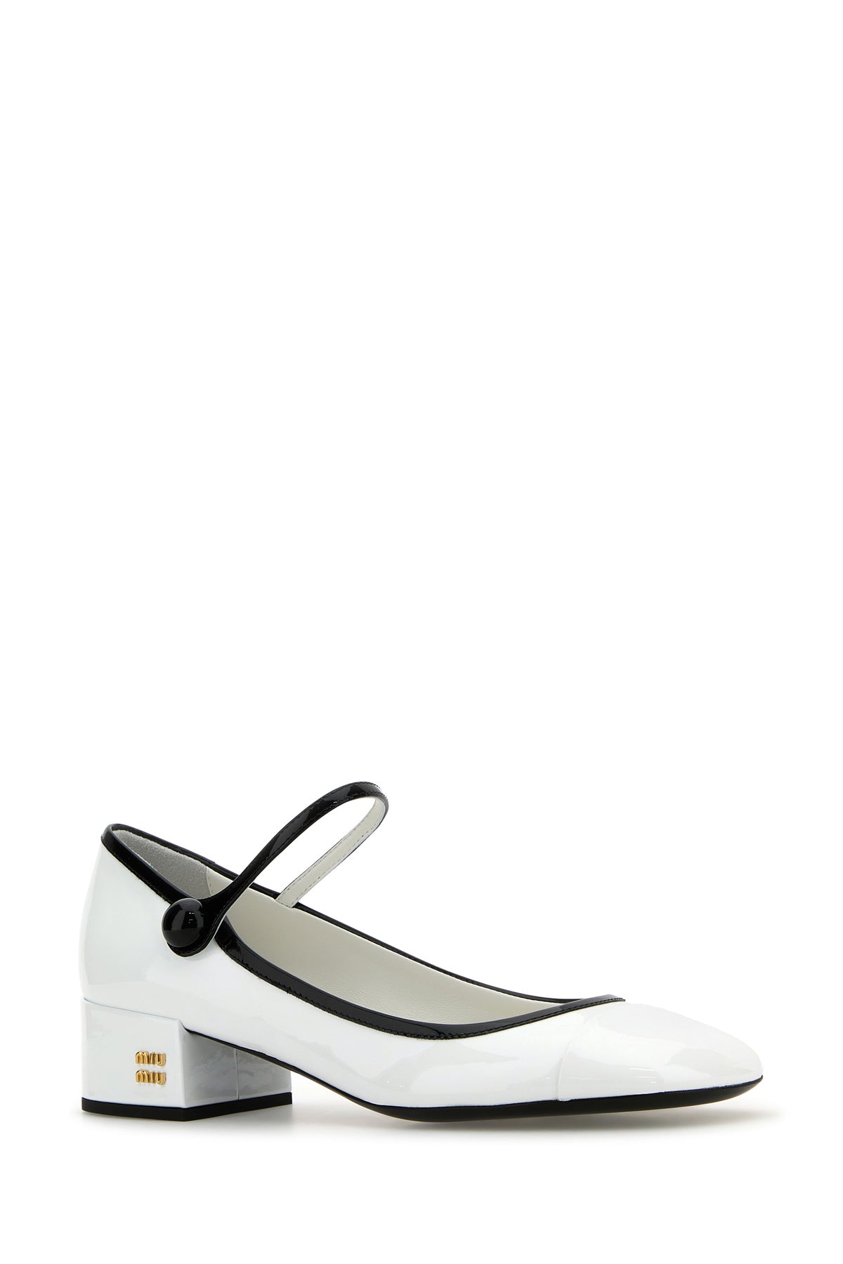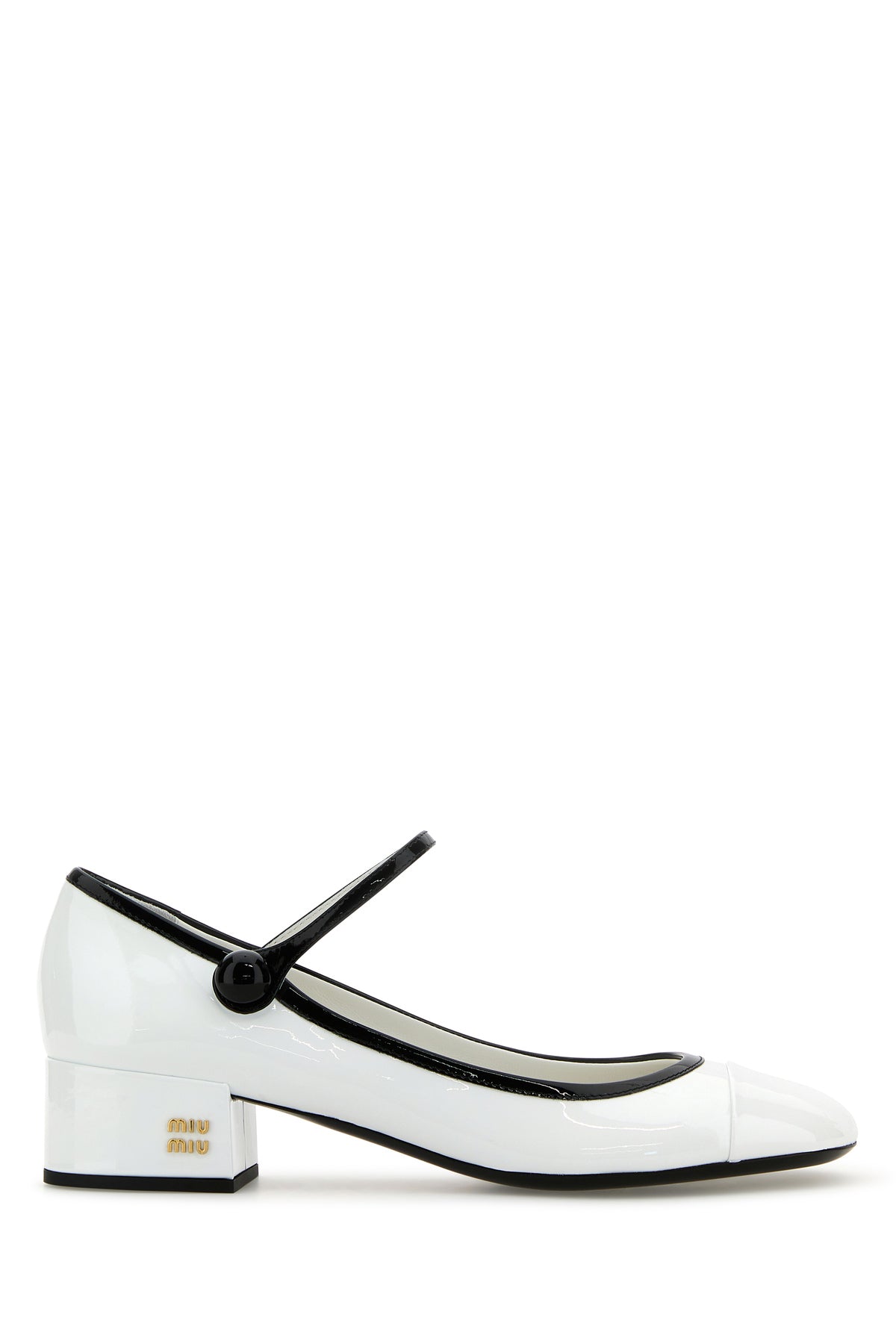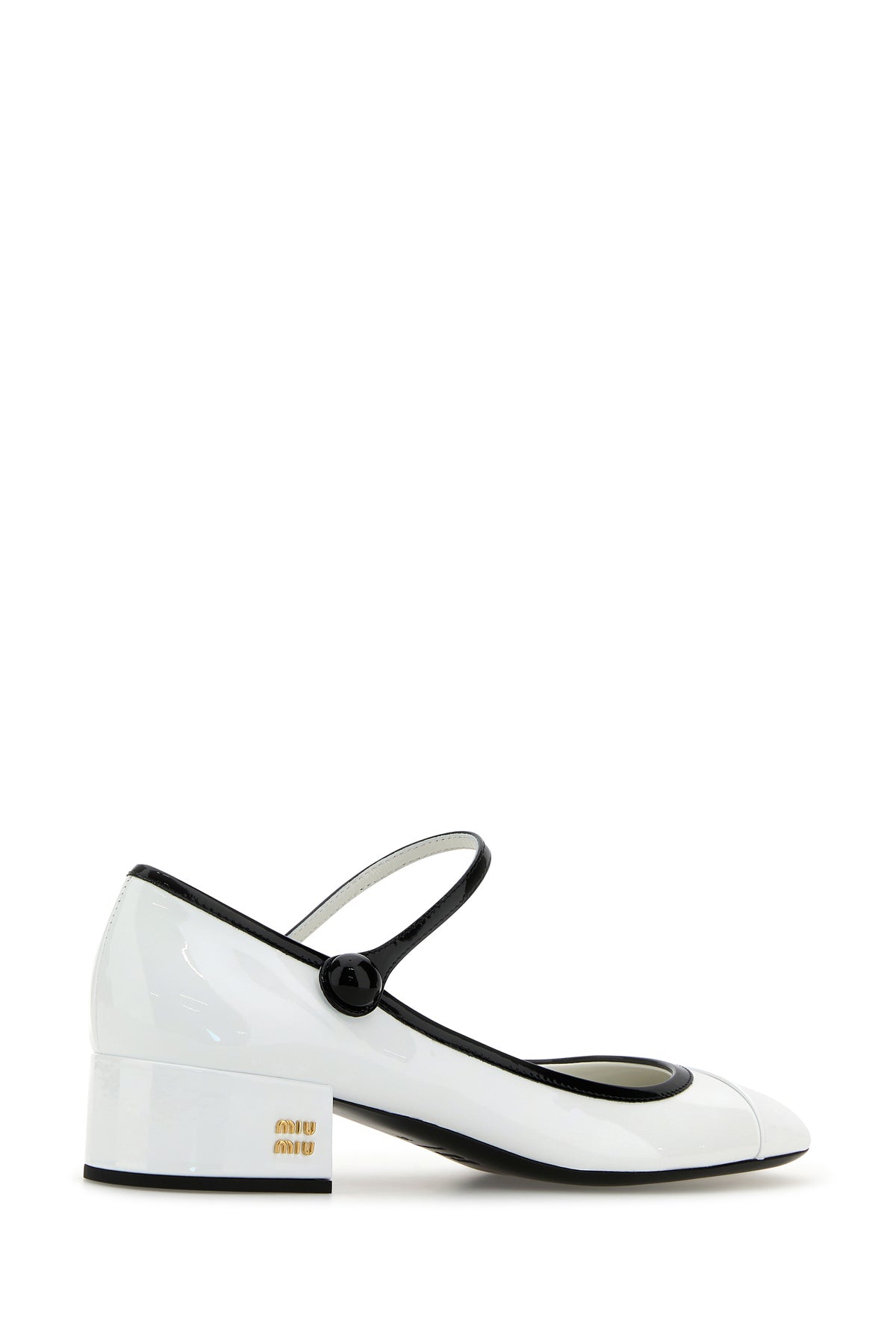 Pumps realized in patent leather enticed by metal lettering logo on the side.