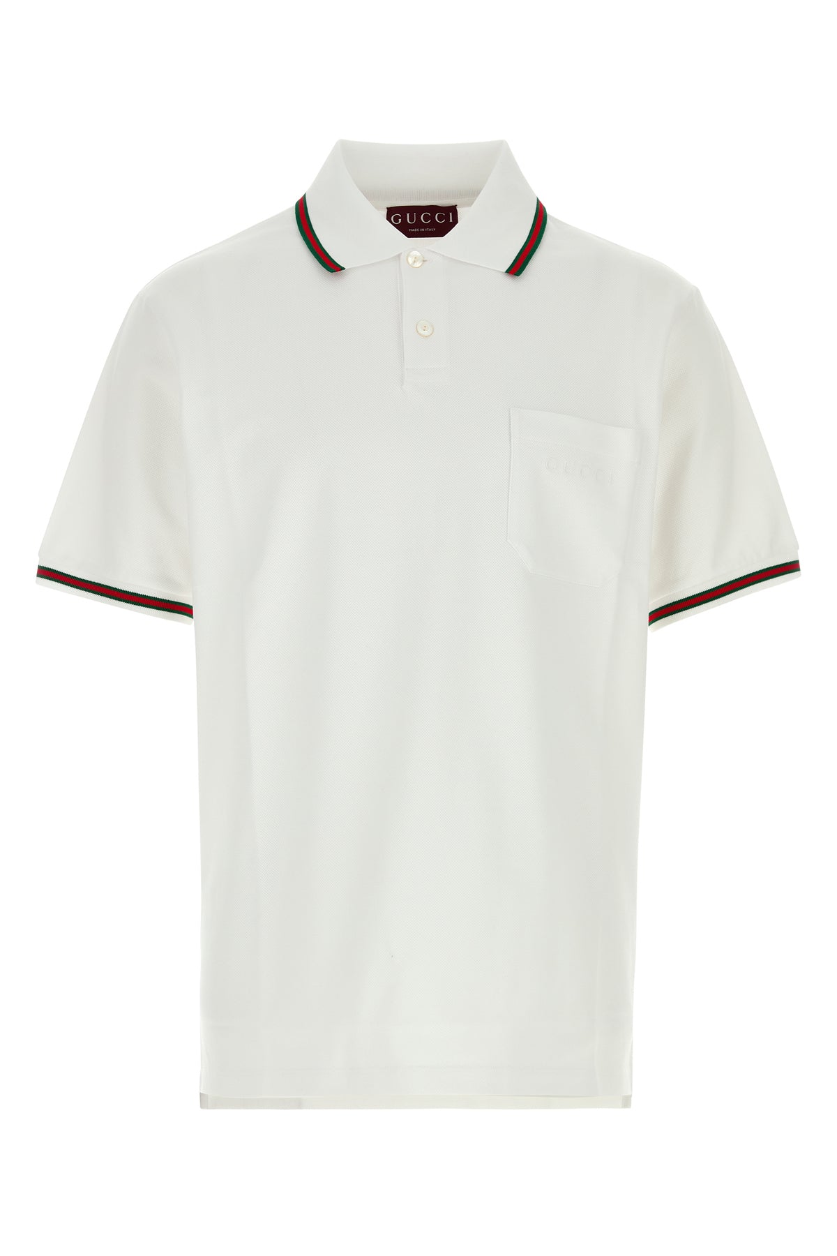Polo shirt realized in pure cotton piquet characterized by Gucci embroidery on the chest enriched by Web ribbon bands on the collar and on the cuffs.