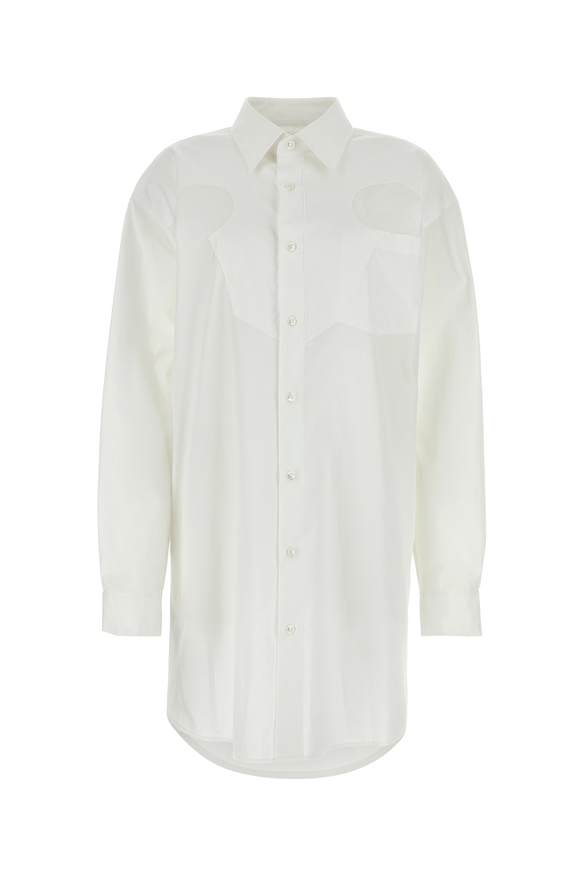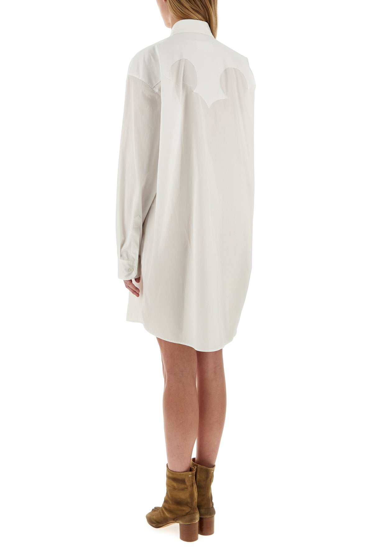 Mini shirt dress realized in pure cotton poplin characterized by tonal iconic stitchings at the back enriched by peculiar tonal fabric insert at the top.