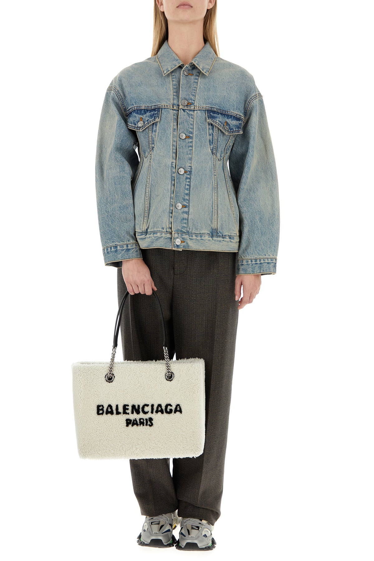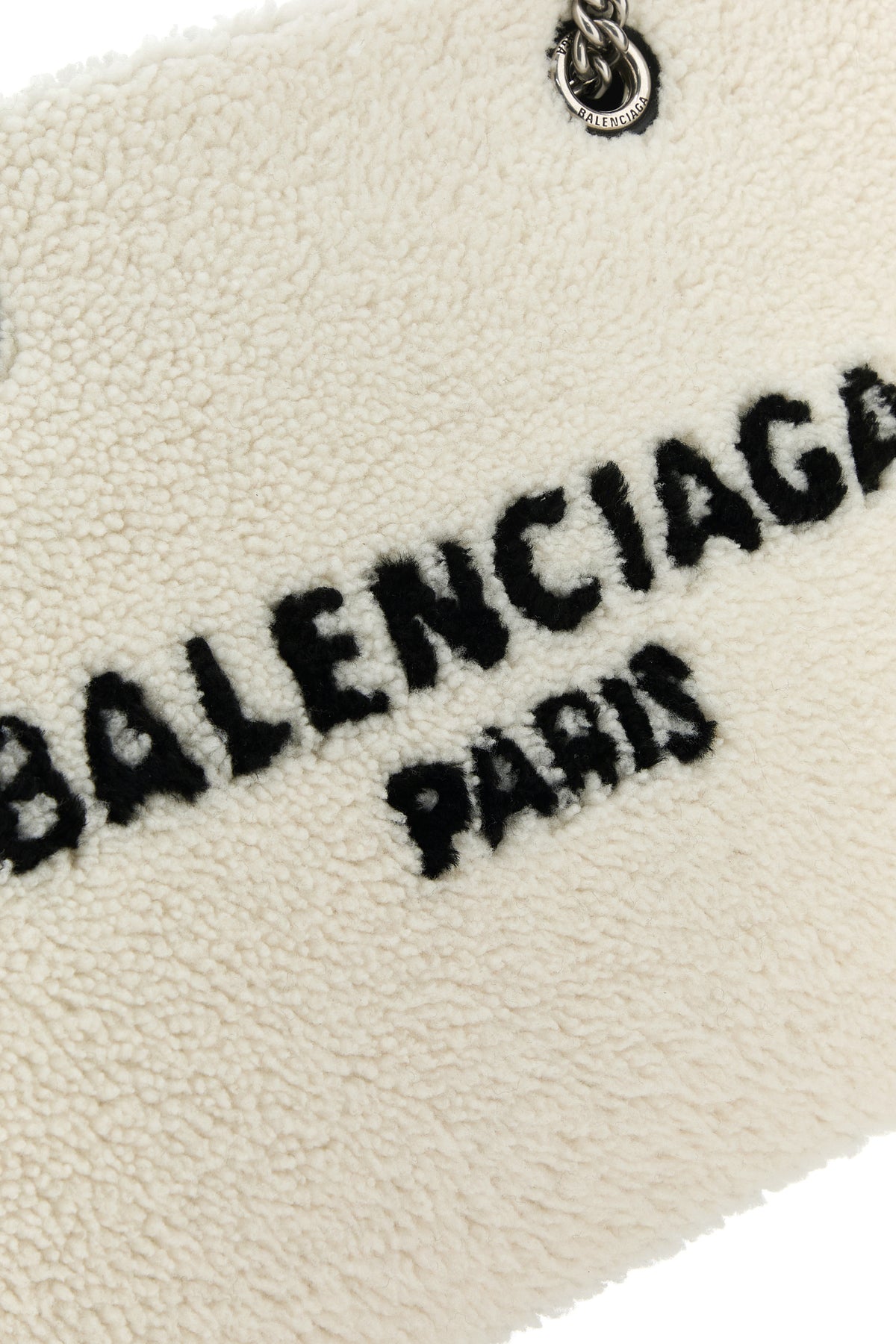 Handbag realized in shearling characterized by contrasting embroidered logo at the front.