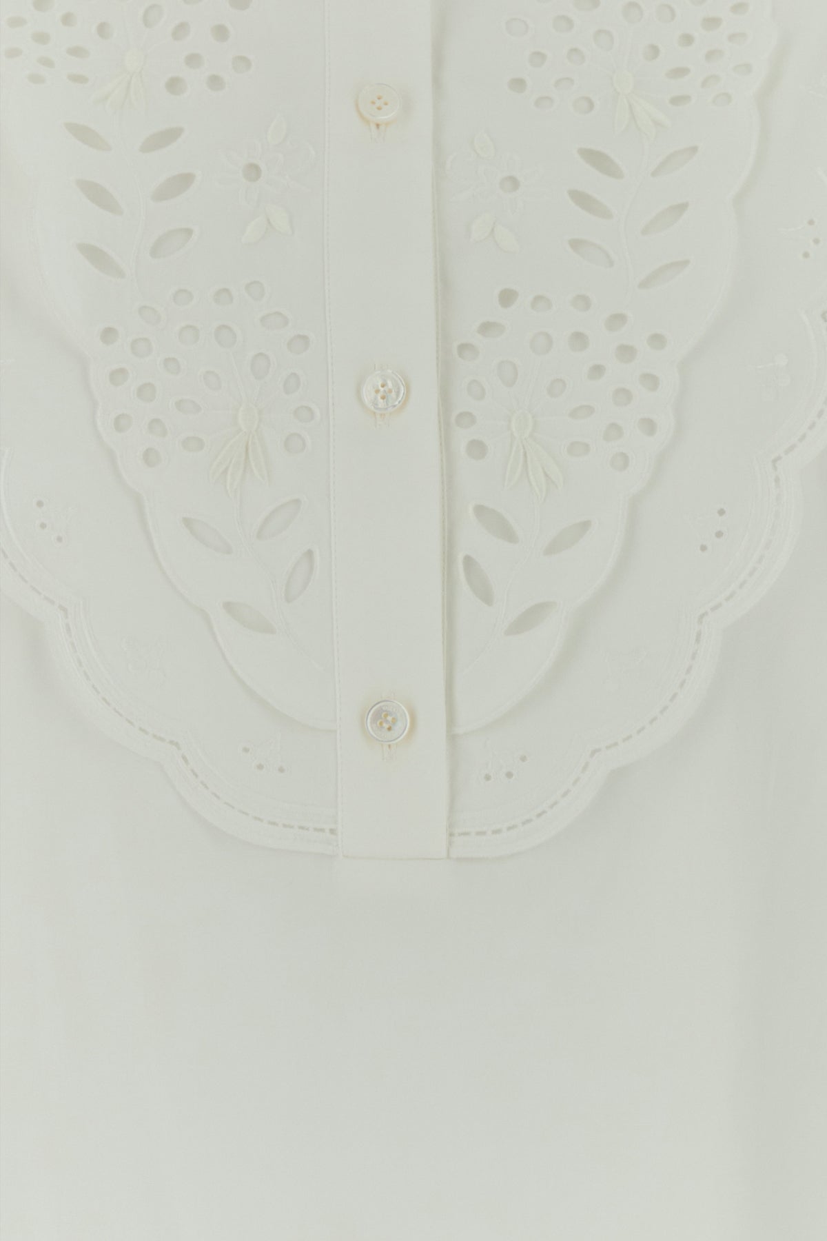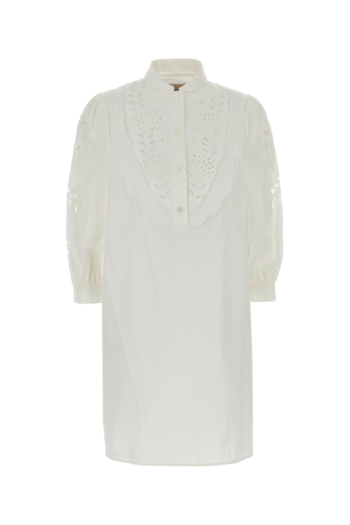 Abito chemisier realizzata in popeline di puro cotone con inserto ricamato sulla parte superiore.