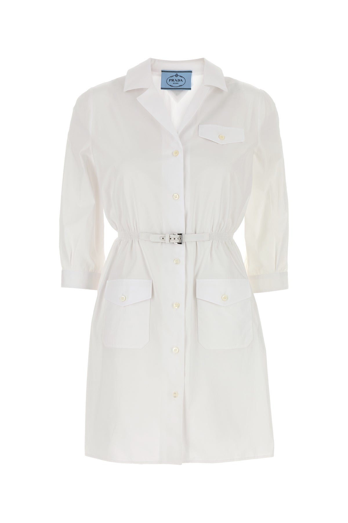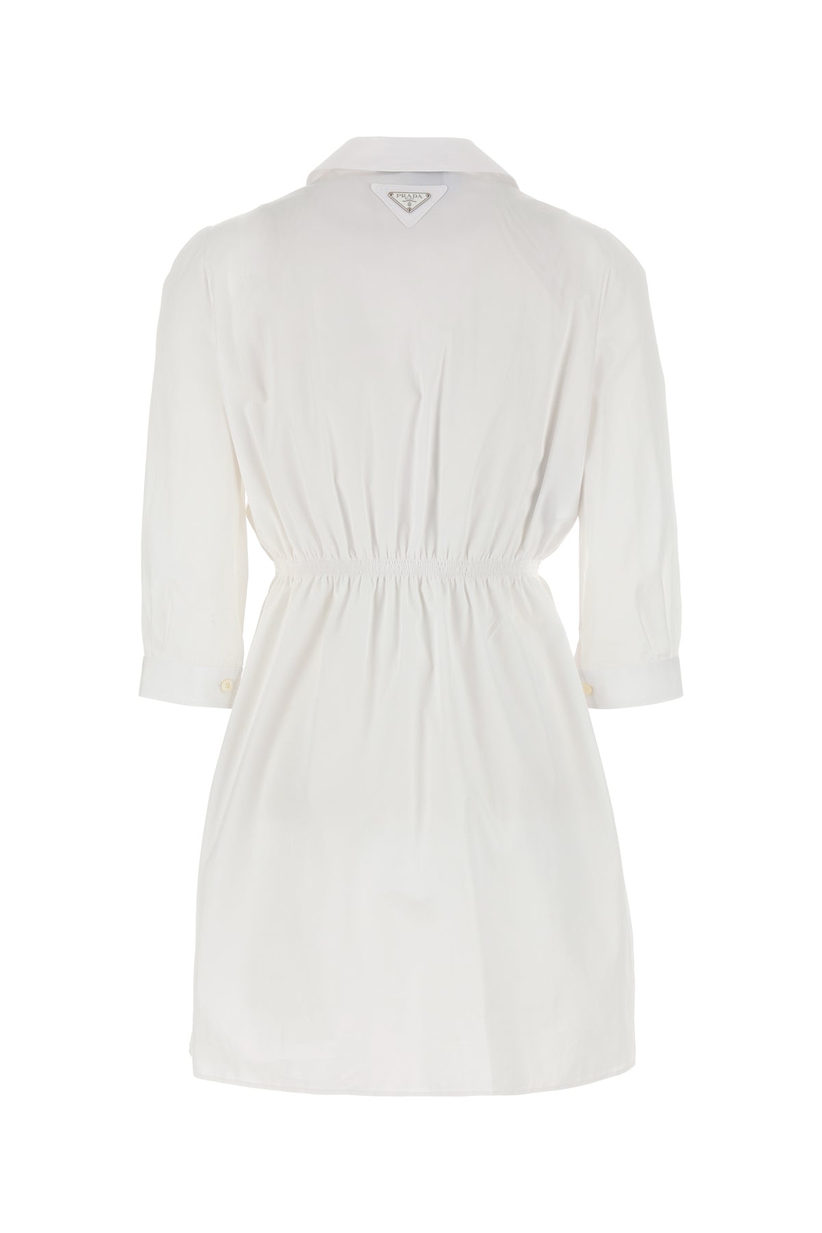 Abito chemisier realizzato in popeline di puro cotone arricchito da iconico triangolo metallico logato sul retro.