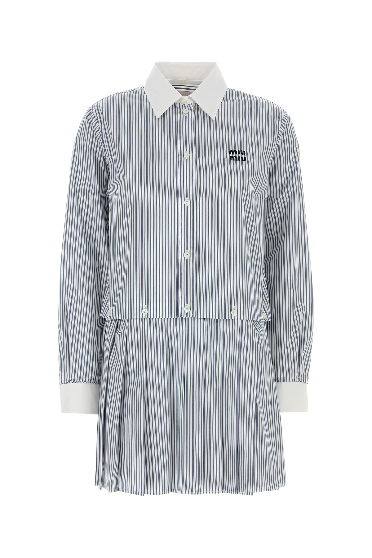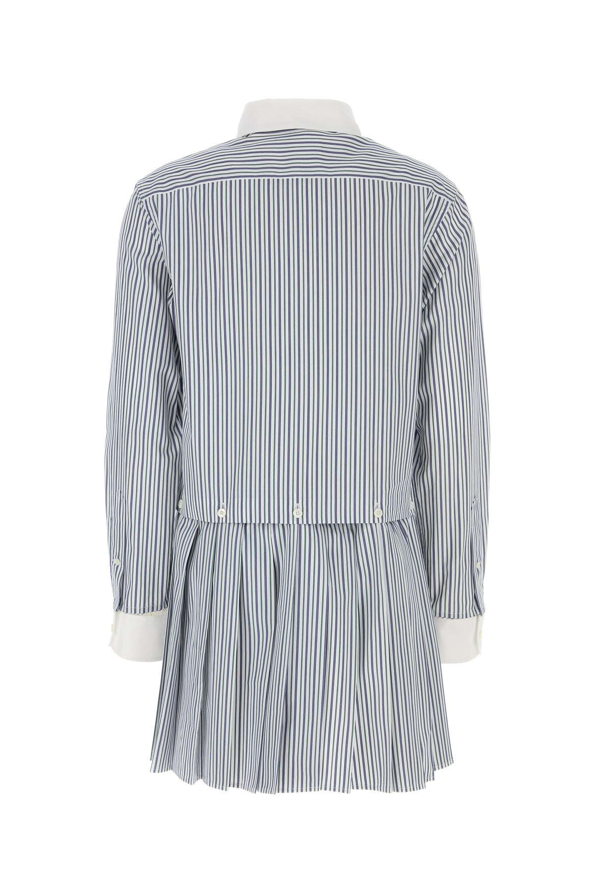Abito chemisier realizzato in popeline di puro cotone caratterizzato da ricamo a righe su tutta la superficie e logo ricamato sul petto.