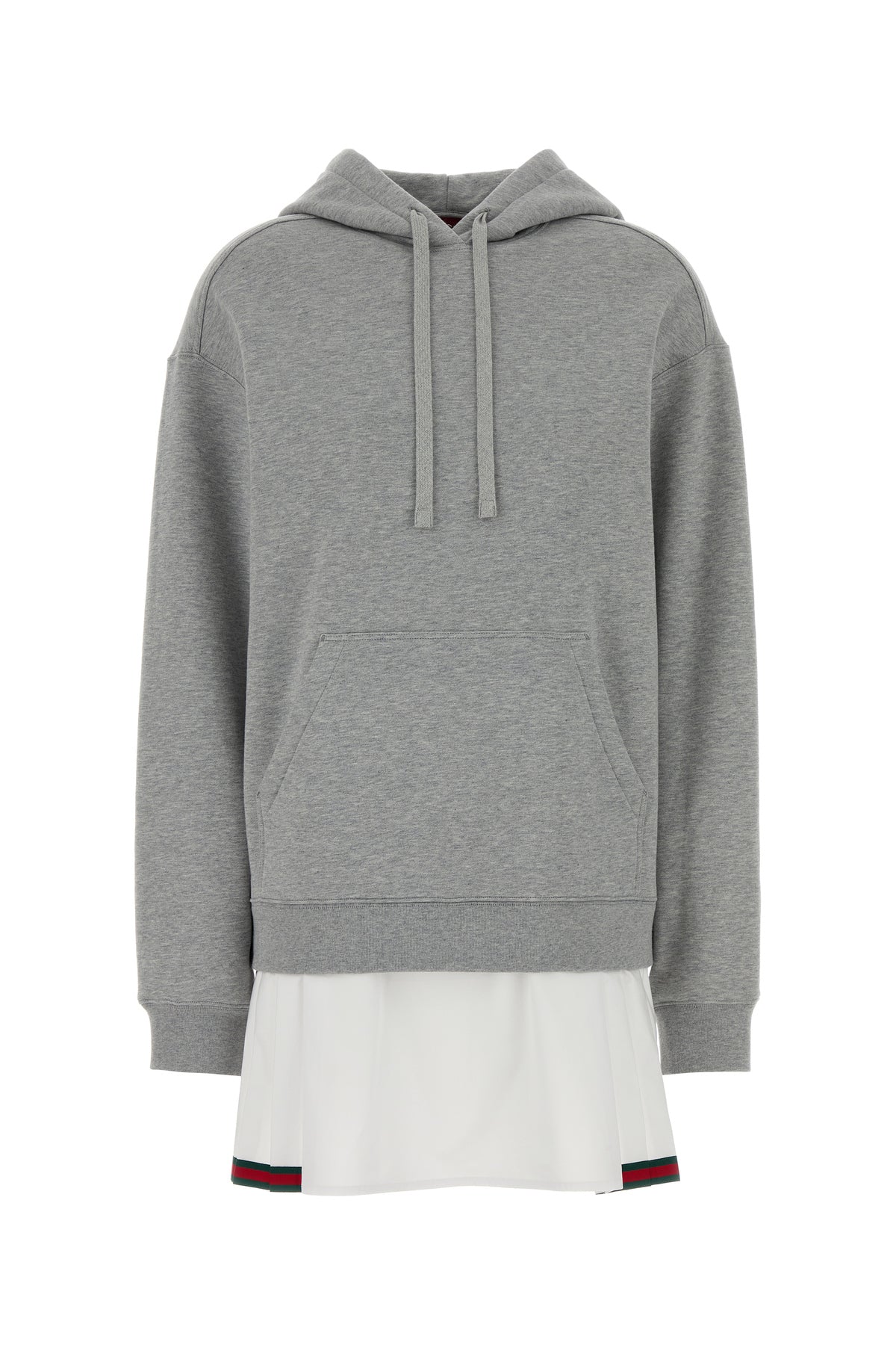Abito felpa realizzato in puro cotone con inserto in popeline a contrasto arricchito da dettaglio nastro Web sul fondo.