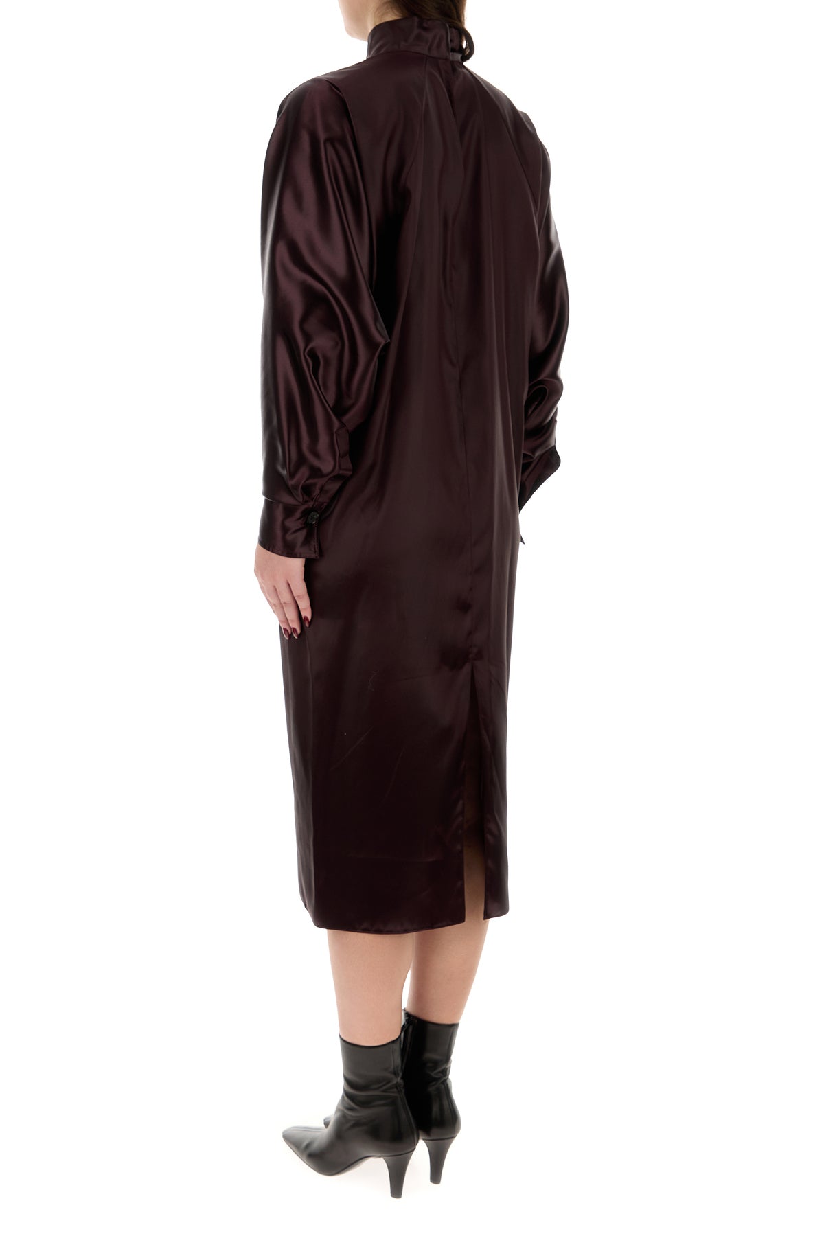 Abito midi realizzato in raso caratterizzato da maniche a pipistrello.