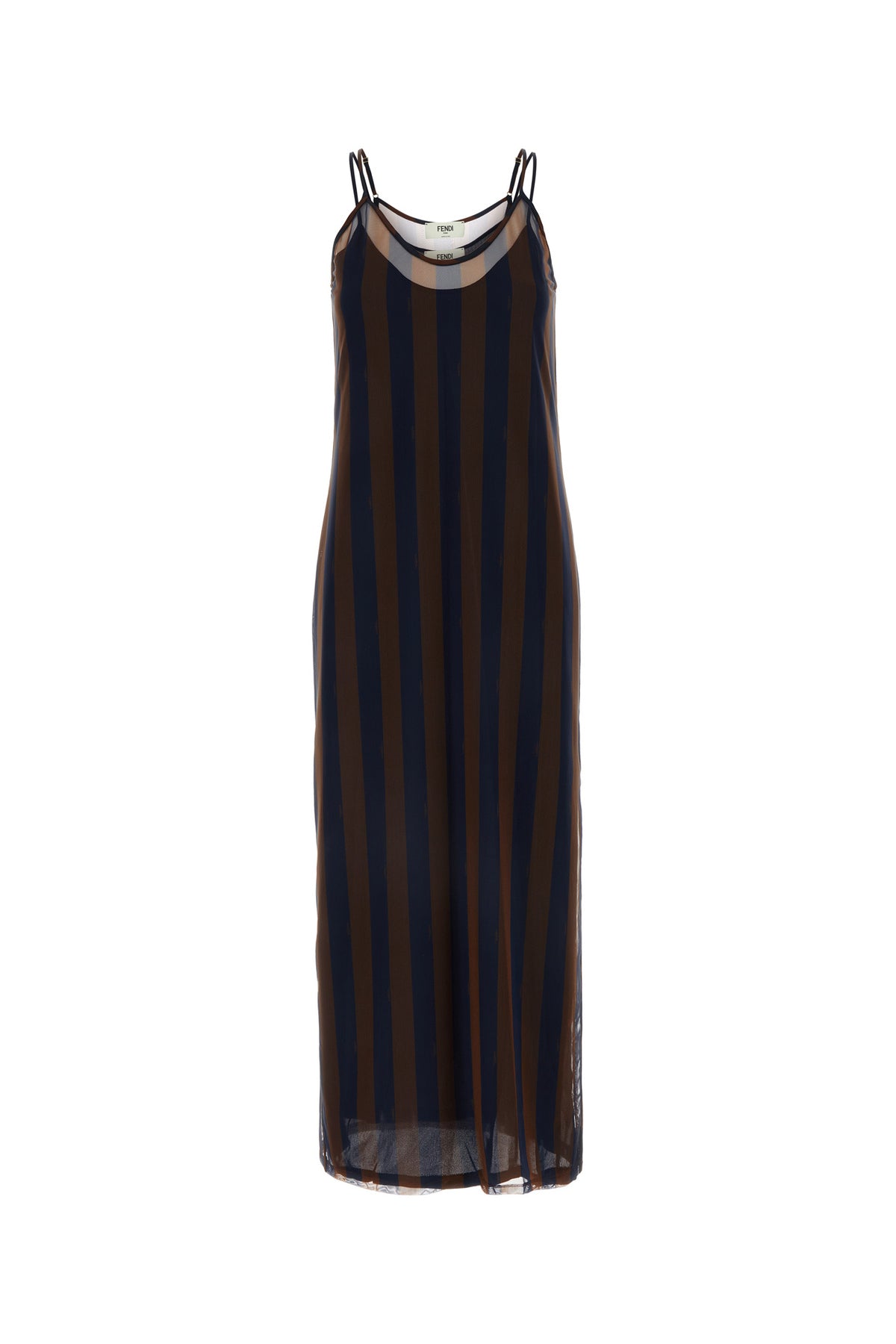 Abito realizzato in tulle stretch caratterizzato da stampa Pequin su tutta la superficie.