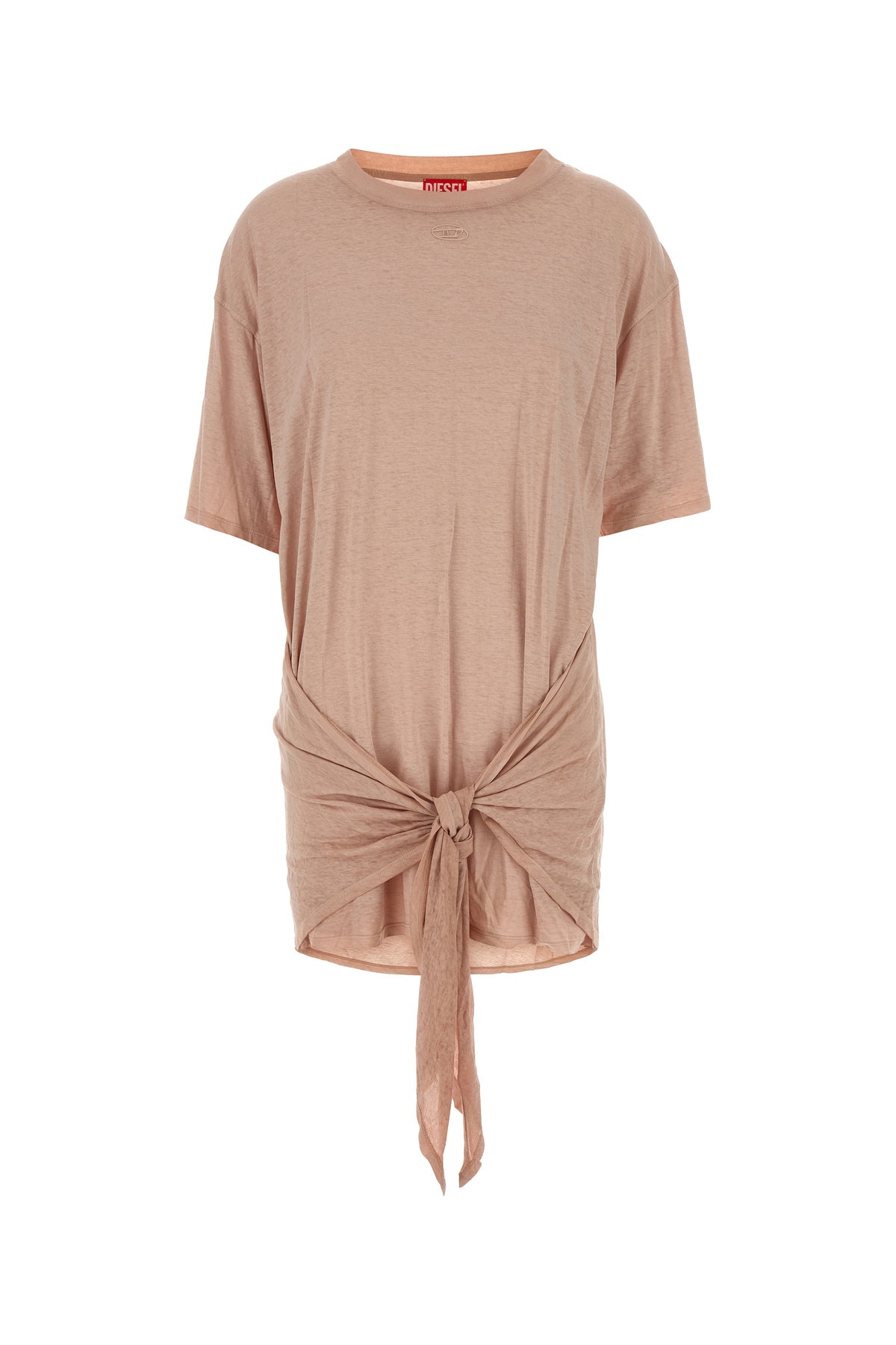 Abito t-shirt realizzata in jersey di canapa e cotone caratterizzata da ricamo D sul petto.