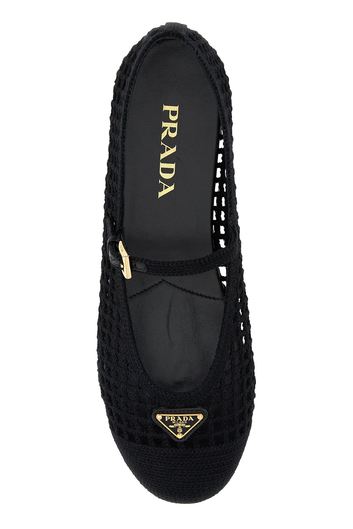 Ballerine realizzate in crochet arricchite da iconico triangolo metallico logato sul collo del piede.
